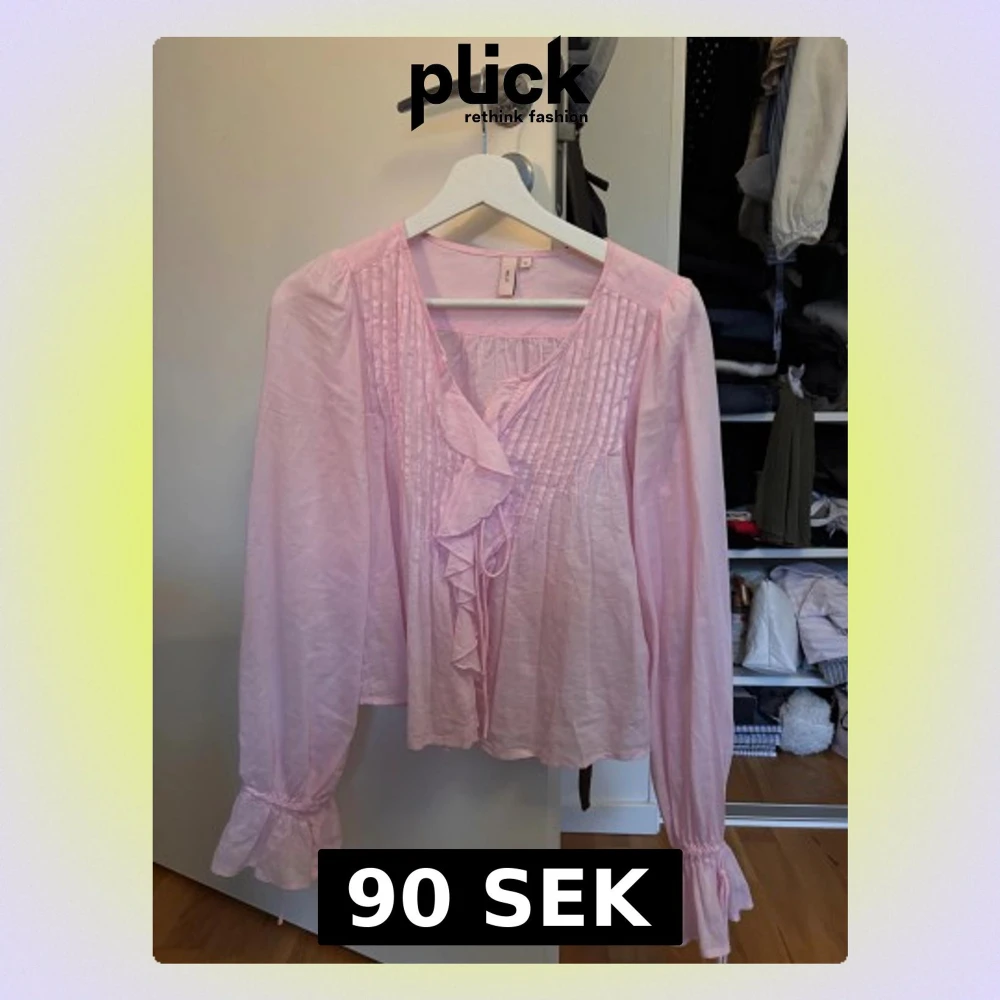 Supersöt ljusrosa blus från Nelly i tunn, luftig bomull. Blusen har långa ärmar med volangdetaljer vid ärmslut, plisserad framsida och volanger längs knäppningen. Perfekt för dig som gillar romantisk och feminin stil.