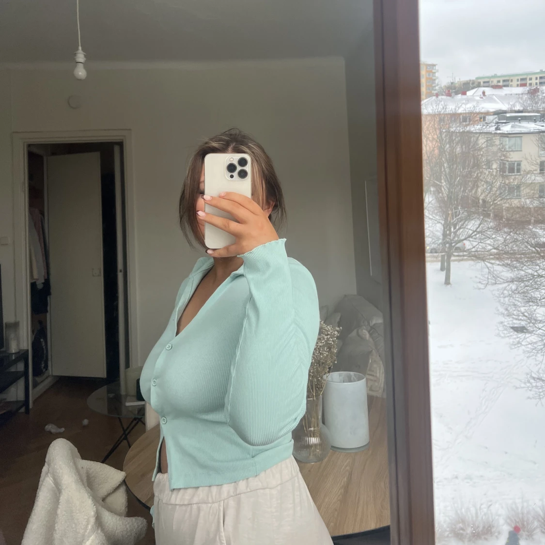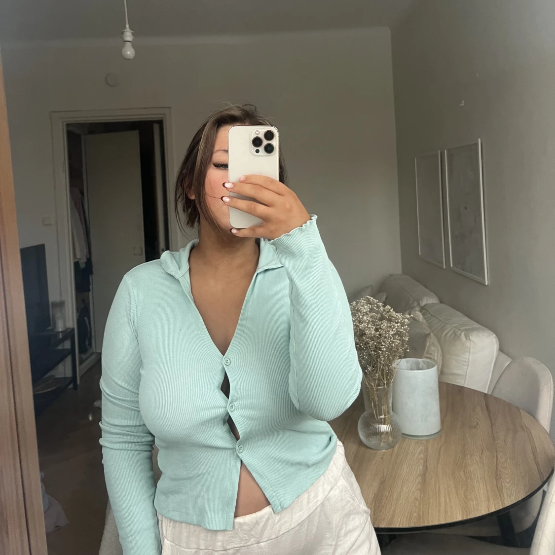 Blus/skjorta i blå/turkos färg. Storlek S men något för liten för mig