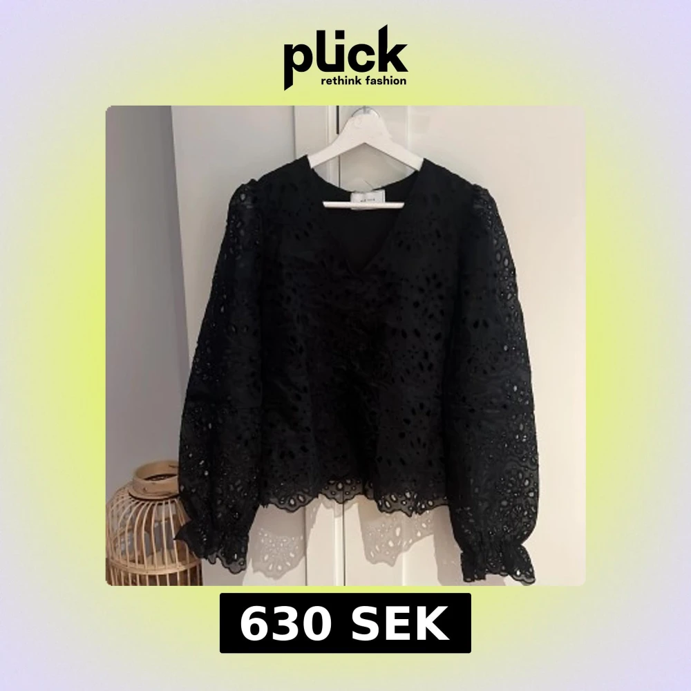Supersnygg svart blus från Neo Noir med broderade detaljer och v-ringning. Blusen har långa puffärmar och är tillverkad i ett genombrutet tyg som ger en cool och trendig look. Perfekt för dig som vill sticka ut lite extra.