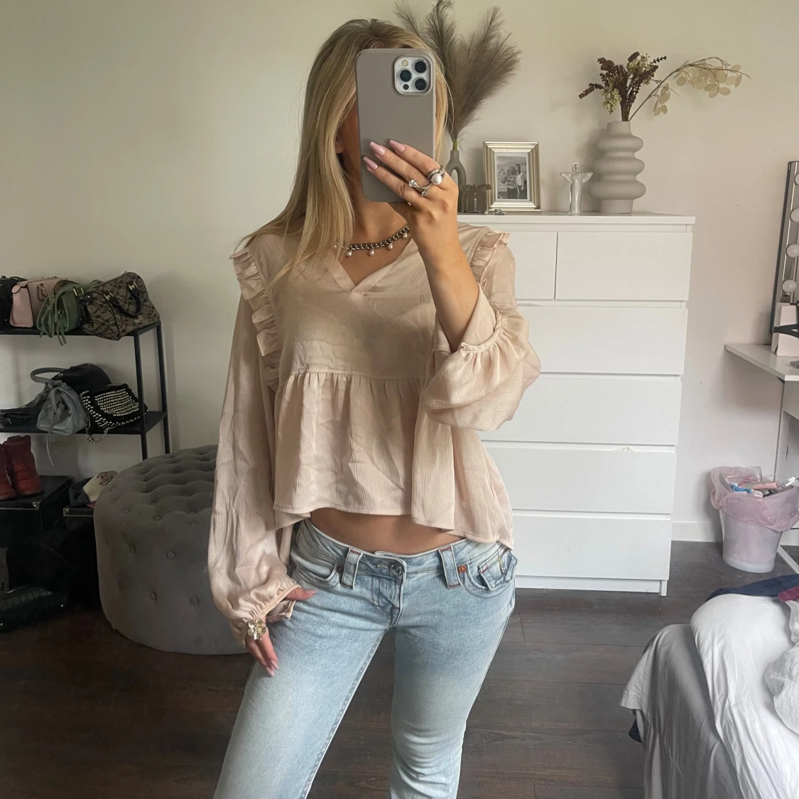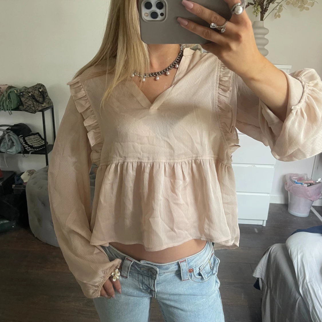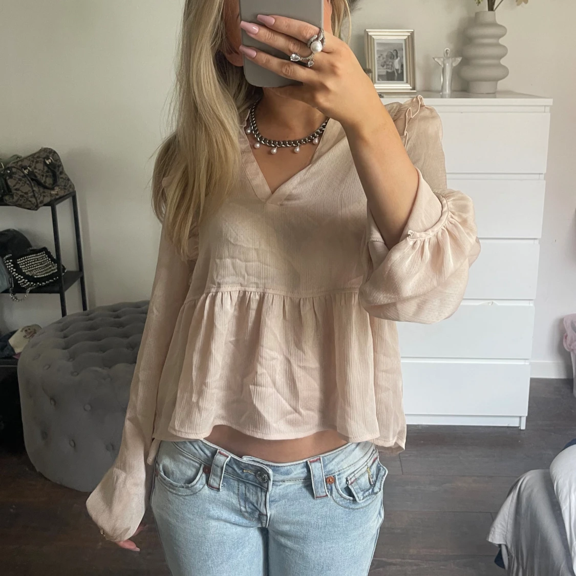 asfin blus från neo noir🩷🩷🩷står ingen storlek i men passar mig perfekt som har xs/s