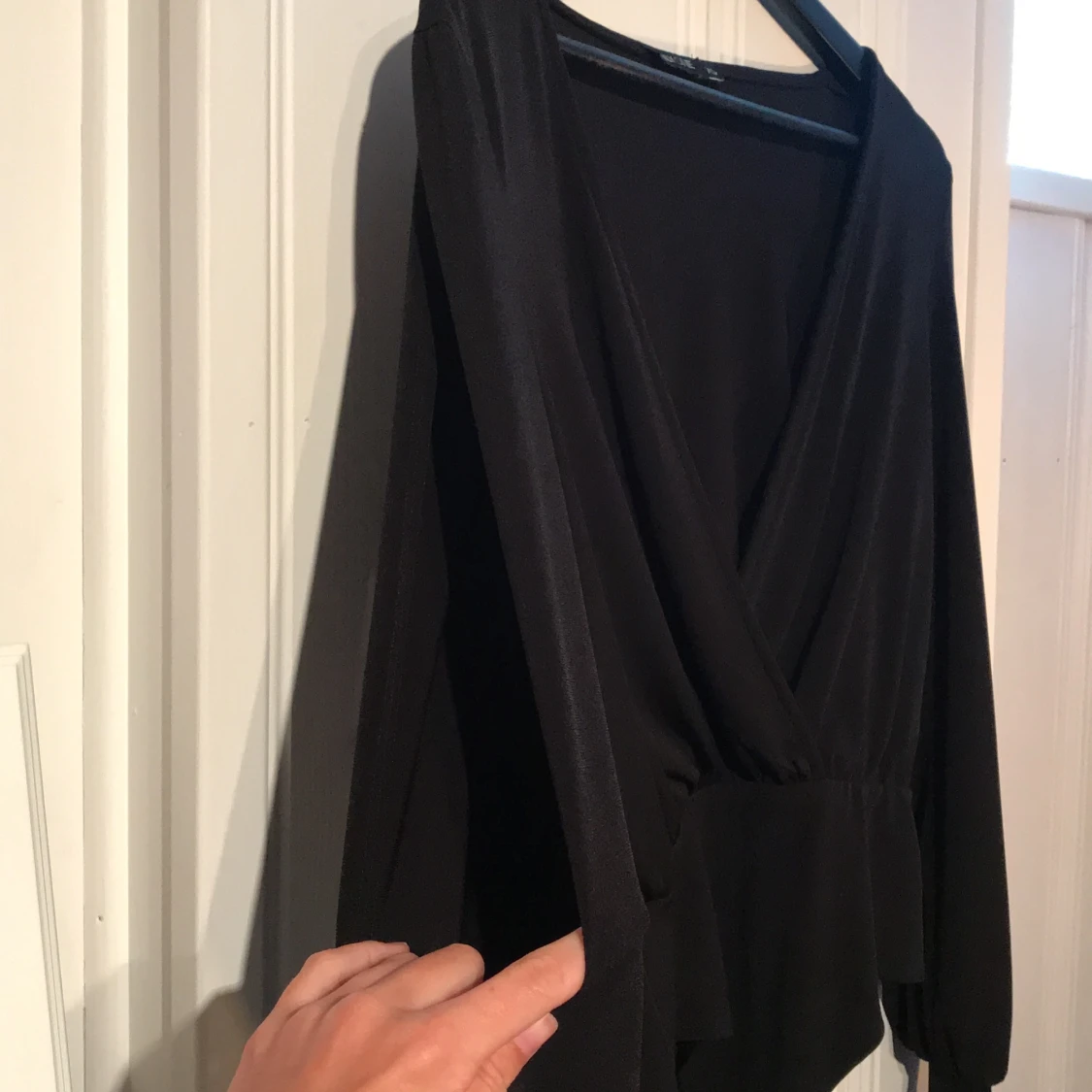 Snygg svart v-ringad body med öppna ärmar. Från Nelly och deras märke NLY ONE. Använd en gång. 80kr + frakt