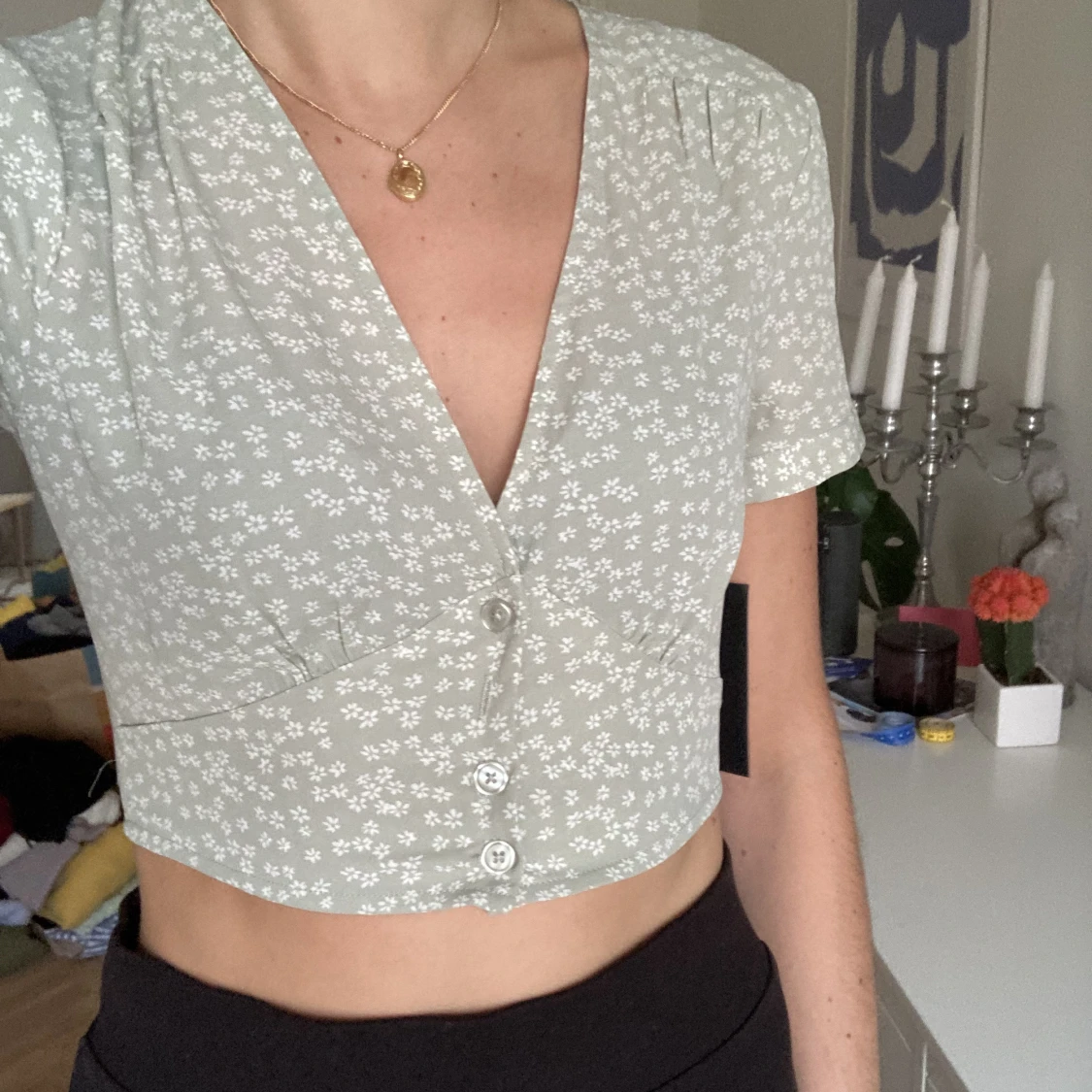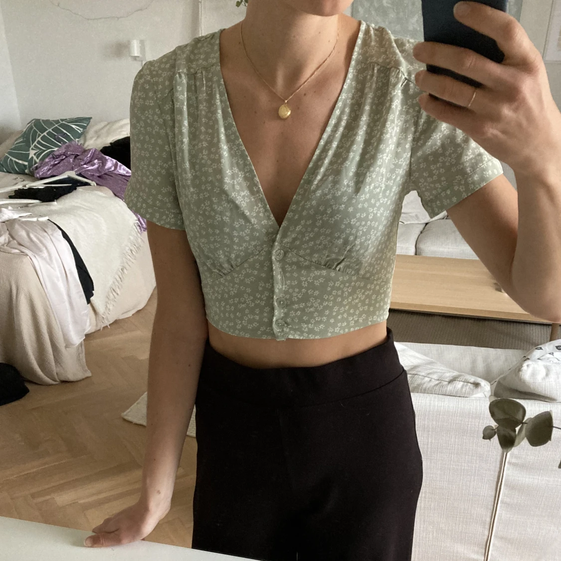 Gullig grönblommig blus från NAKD. Aldrig använd då jag köpte två storlekar men glömde lämna tillbaka (har lappen kvar).