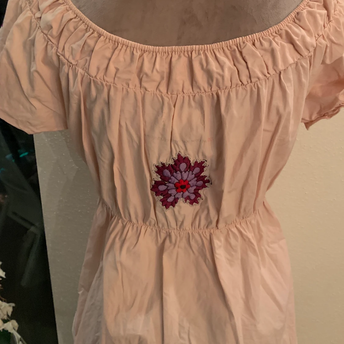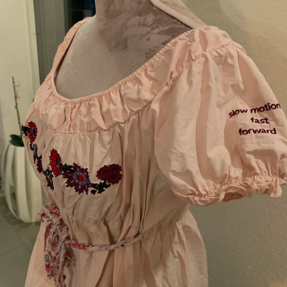 Superfin odd molly blus med borederingsdetaljer och knytning i midjan.