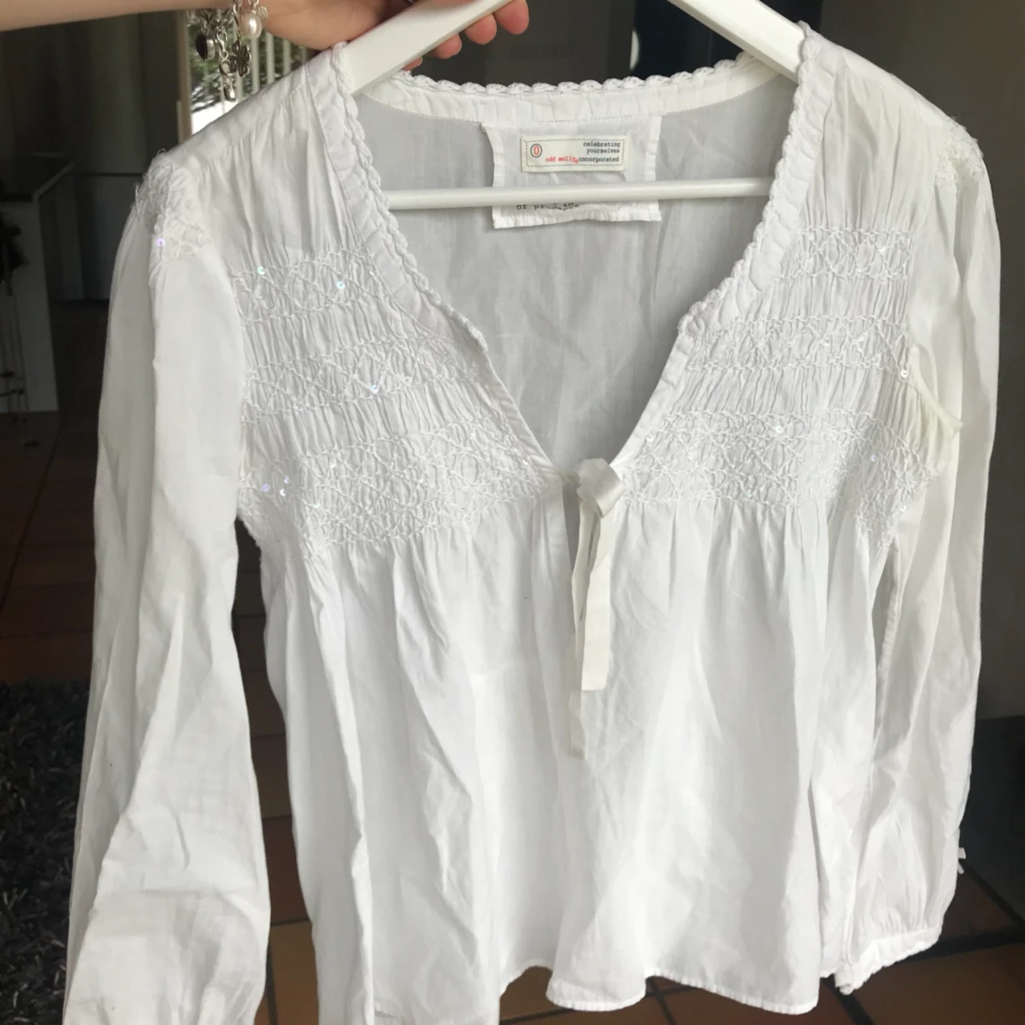 Vit blus från odd Molly, använd endast fåtal gånger eftersom den är för stor tyvärr! Köpt för 1195kr & säljs för endast 350kr