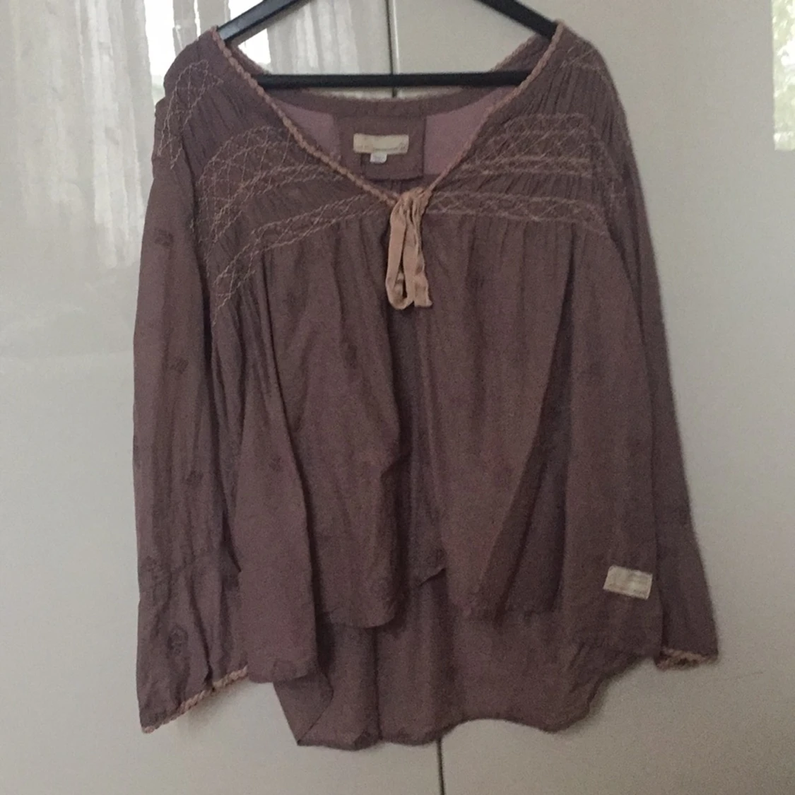Jätte gullig och fin blus från Odd Molly. Använd enstaka gånger men när jag köpte den insåg jag att den hade ett litet hål vid underarmen tyvärr men det går lätt att fixa med nål och tråd, jag har bara inte orkat då jag knappt använder den. Storlek 1 vilket jag tror motsvarar medium. Modellen är ganska bred och kan uppfattas som stor i storleken. Köparen står för frakt!✨