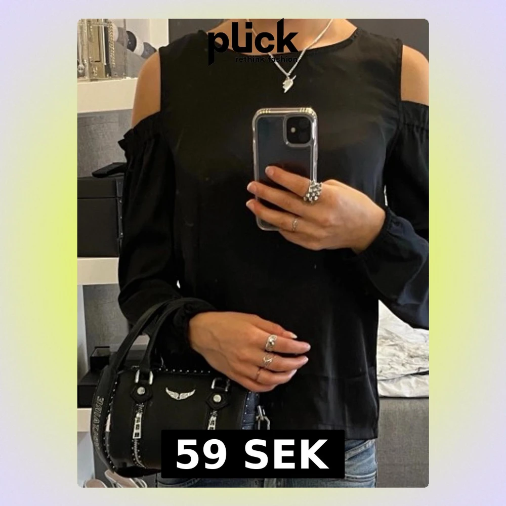 Svart off shoulder blus med långa ärmar med resår vid handlederna som ger en snygg puffeffekt. Passar XS/S.