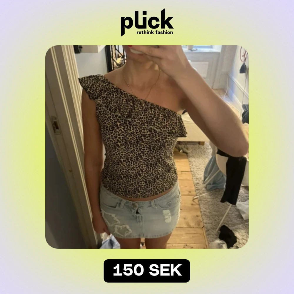 One shoulder /off shoulder topp med leopard mönster & volang đđjĂ€ttesnygg, strl XS