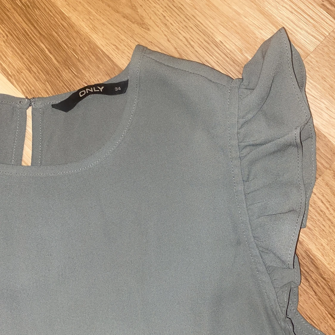 Grönt linne/blus med volang i armarna från ONLY. Storlek 34. Knappt använt!