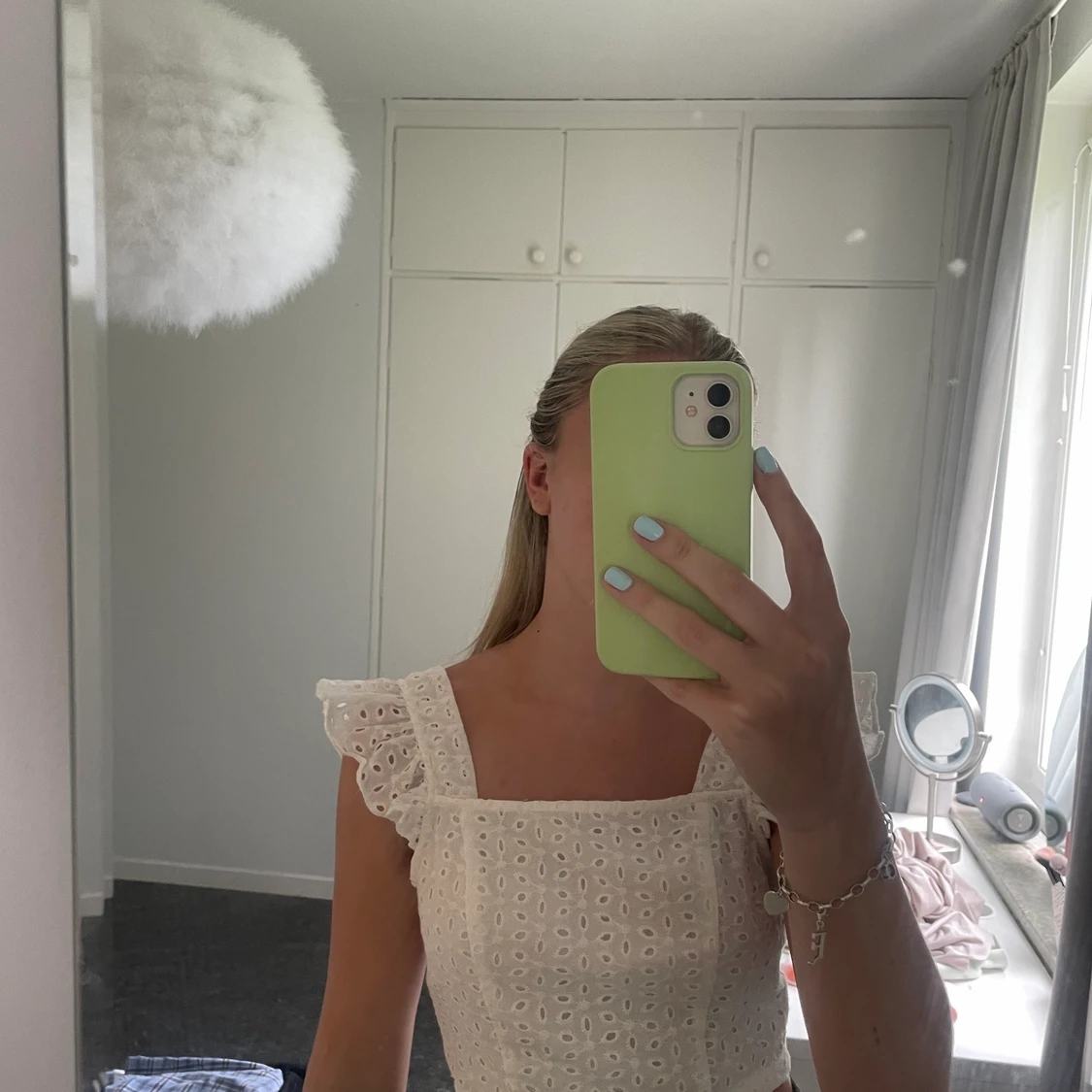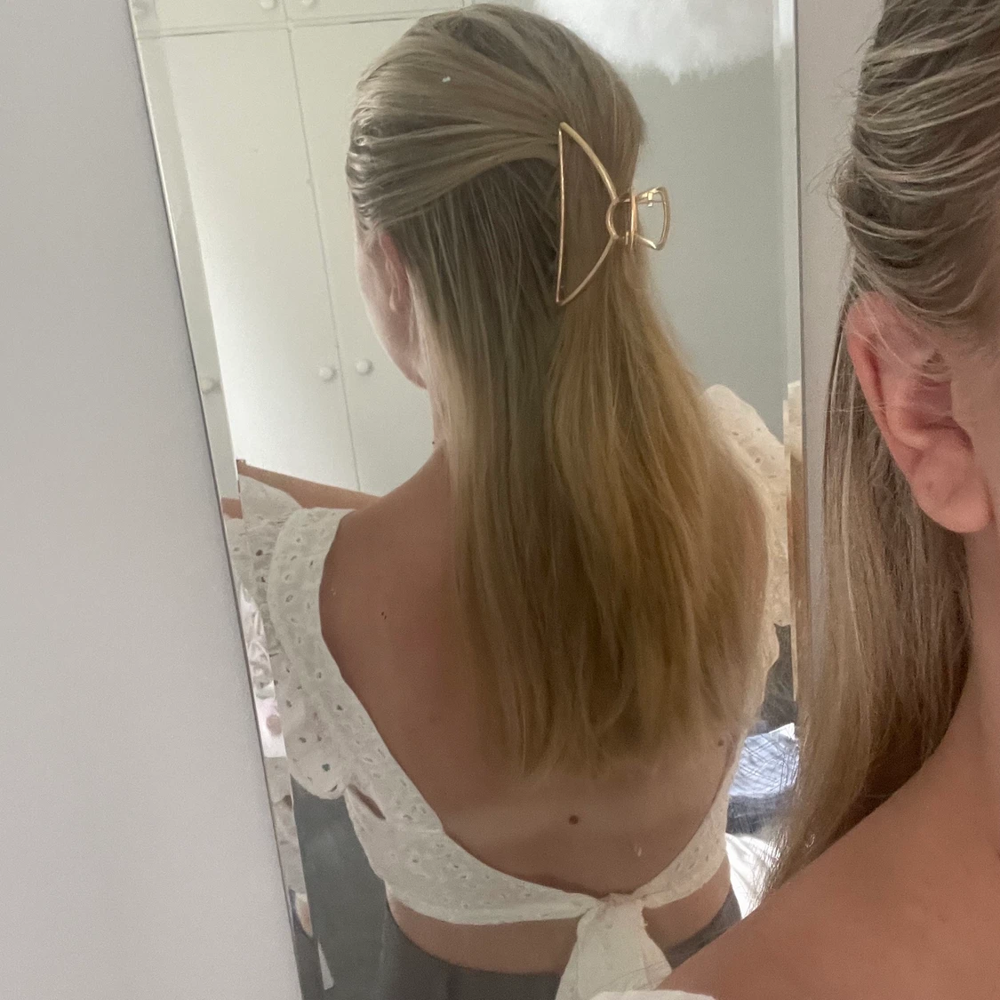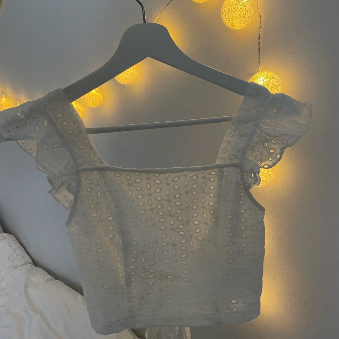 Vit spetstopp med öppen rygg från shein i storlek S