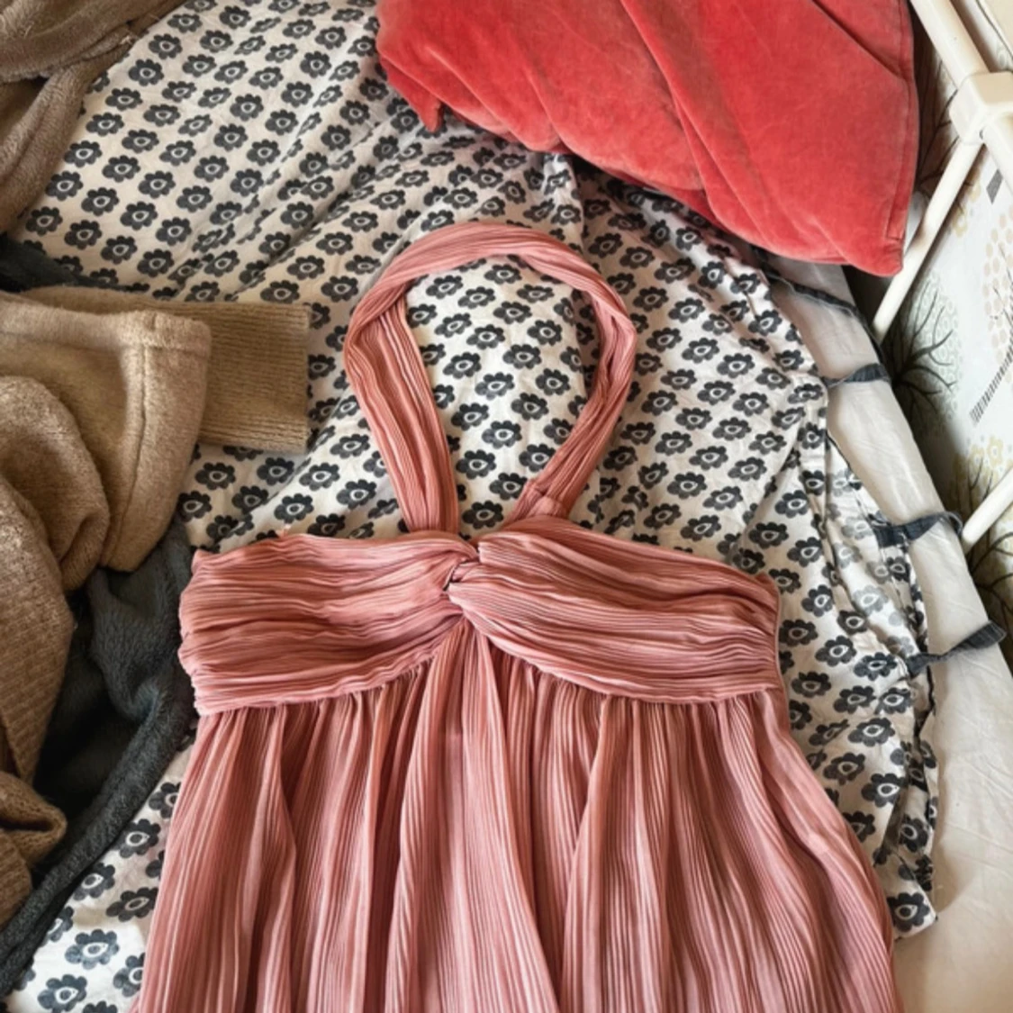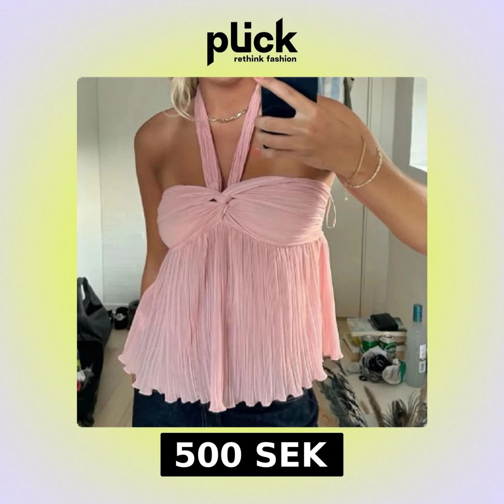 Supersöt plisserad rosa halterneck topp från Zara med twistad detalj framtill. Toppen har en flowy passform och är ärmlös med breda axelband som knyts i nacken. Perfekt för dig som vill ha en luftig och trendig look i sommar.
