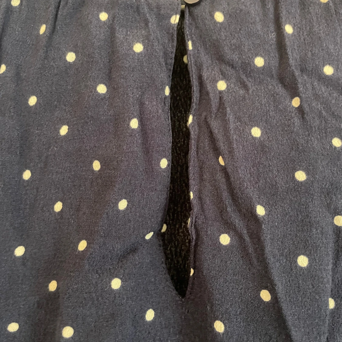 Fin blå prickig blus med knapp! Passar perfekt för både fester eller till skolan❣️ går att knäppa eller ha uppknäppt
