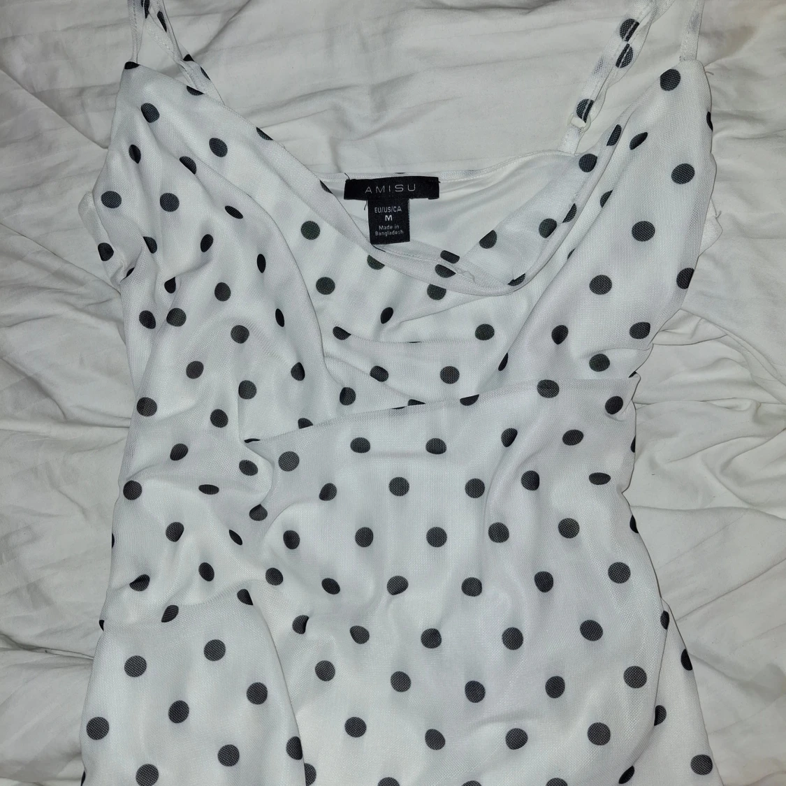 Supersött vitt linne frĂ„n Amisu med svarta prickar och tunna axelband. Hör av er vid funderingarđ AnvĂ€nd 1 gĂ„ngđ storlek M men passar mig som vanligtvis har XSâ€ïžâ€ïž