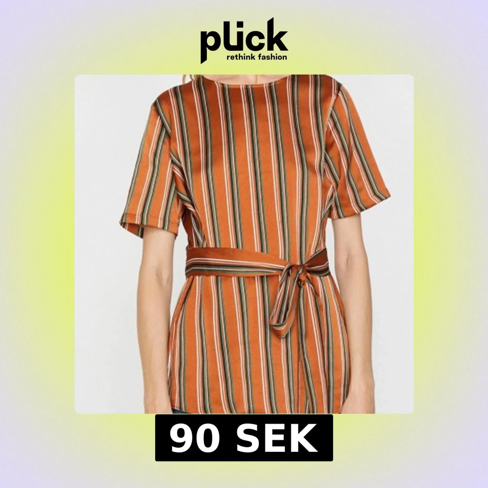 Säljer en snygg topp från Koton i orange med vita och gröna ränder. Toppen har korta ärmar, rund halsringning och ett matchande knytbälte i midjan. Perfekt för dig som gillar färg och mönster! Materialet känns lätt och skönt mot huden.