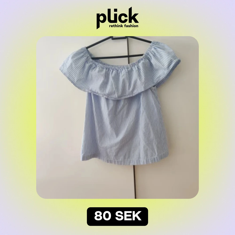Säljer en gullig topp med volanger som är randig🤍💙. Går att ha vanligt eller off shoulder. Skriv för fler bilder