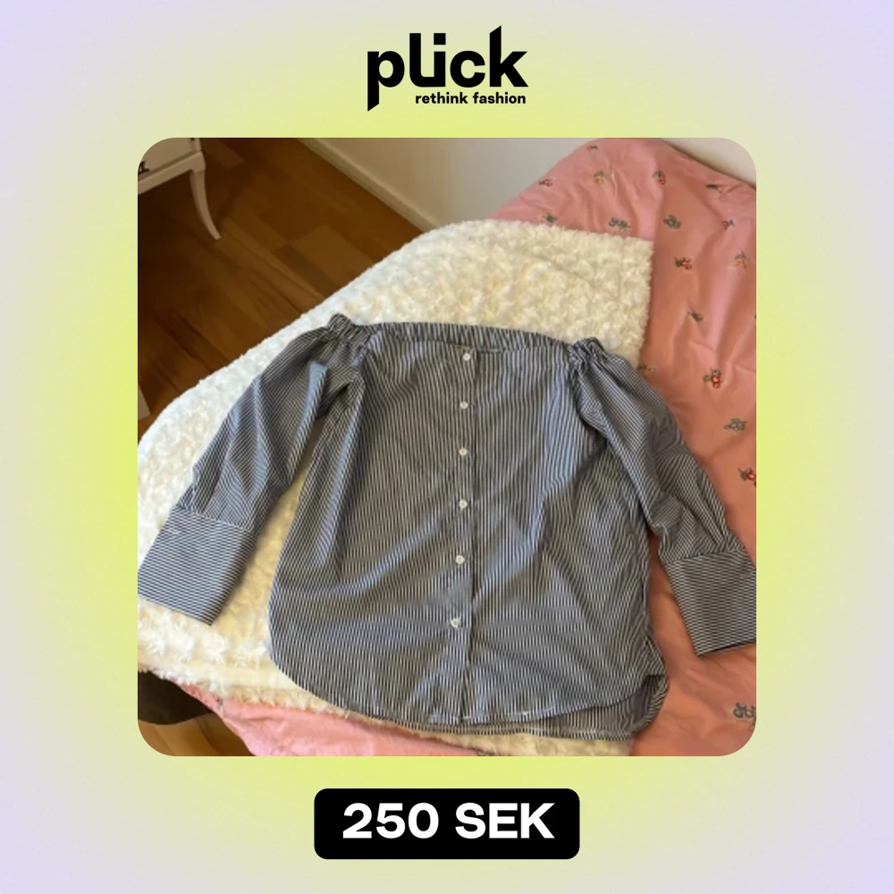 Randig off shoulder blus från märket Raglady. Använd fåtal gånger, är i väldigt bra skick. Kan bäras med knapparna framtill samt med knapparna baktill✨