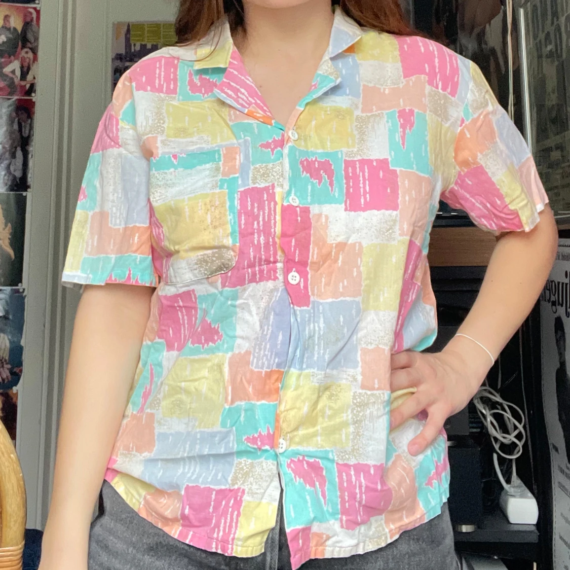 Blus från 80-talet. Jag kan mötas upp i Uddevalla centrum, annars fraktar jag gärna. Köparen står för frakten. (Står ej för postens slarv) katt finns i hemmet.