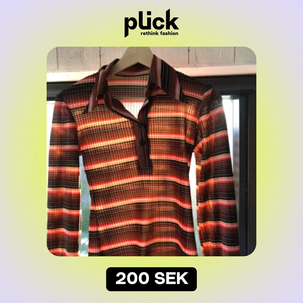 Vacker blus från 70 talet🧡Rosa,svart och röd randig i ett unikt material där det är vilt i ett vågigt mönster vilket gör det stretchigt🫶🏼Hör av dig vid frågor🧡🧡