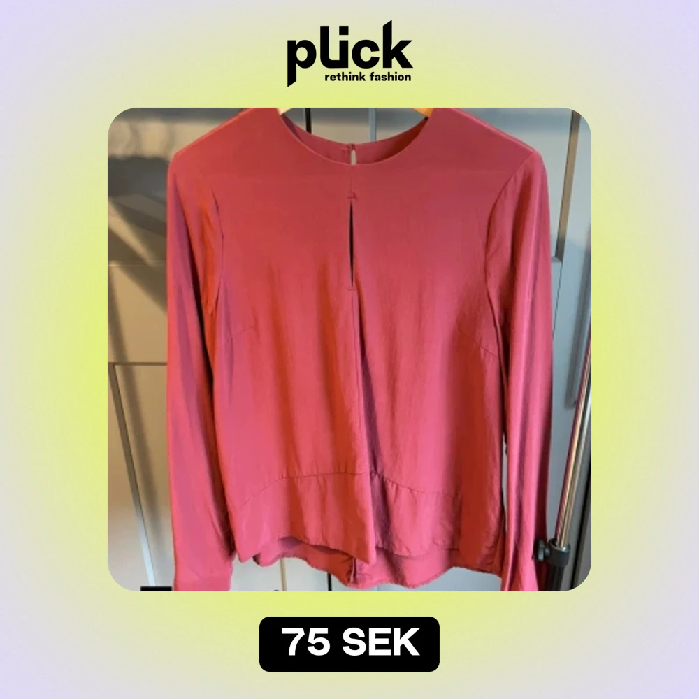 Röd blus i mycket gott skick. Detaljer med öppna ”sömmar” fram och bak. Knäppa med knapp i bak.