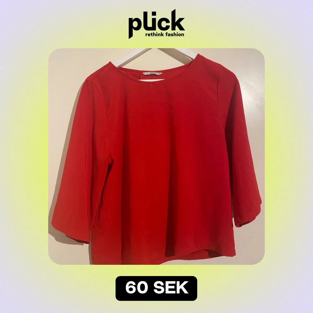 Snygg röd topp från ONLY med trekvartsärm och rund halsringning. Perfekt för en färgglad touch till din outfit. Passar bra till både jeans och kjol.
