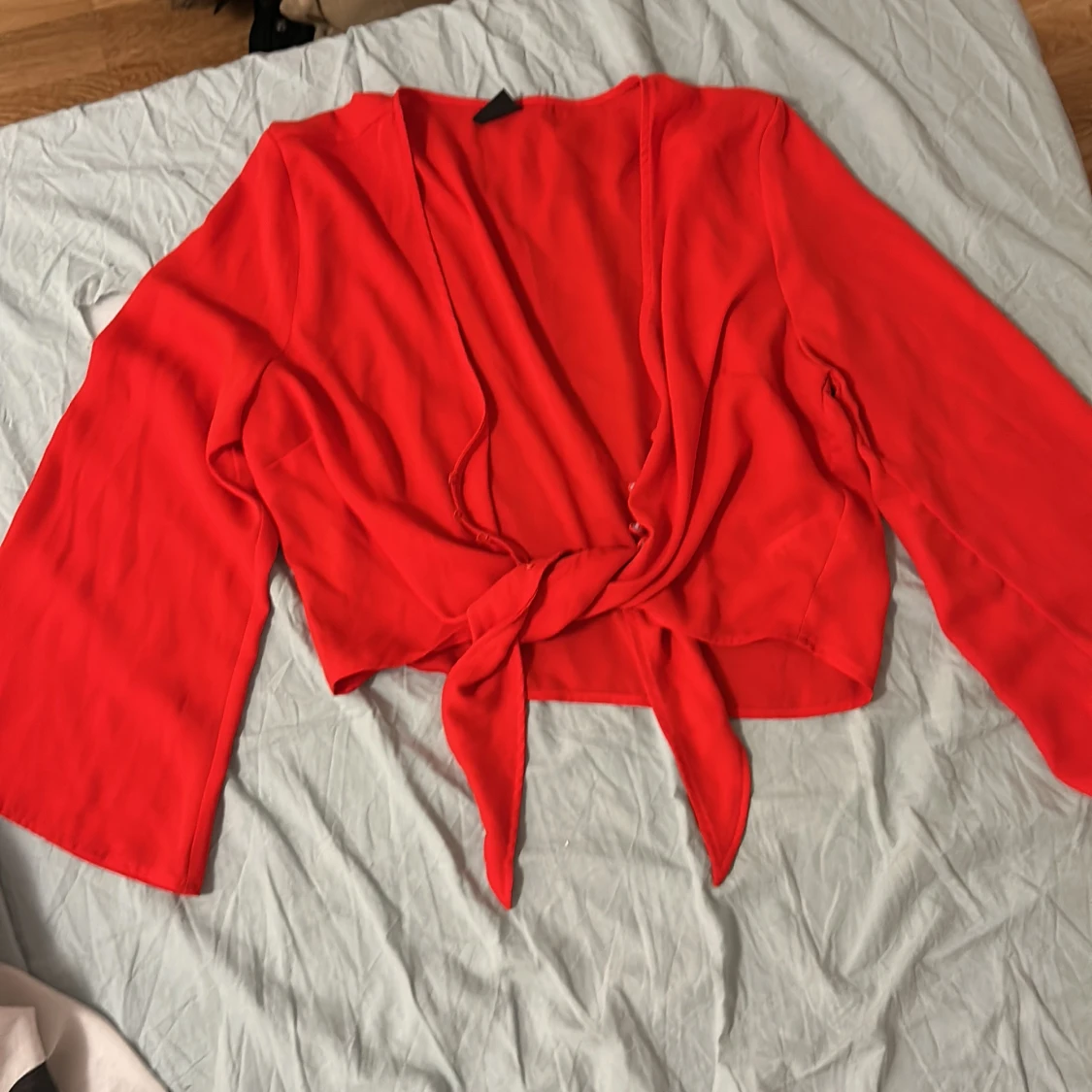 En röd långärmad tröja, den är lite genomskinlig men inte så mass mycket så man ser på kamera. Aldrig använd