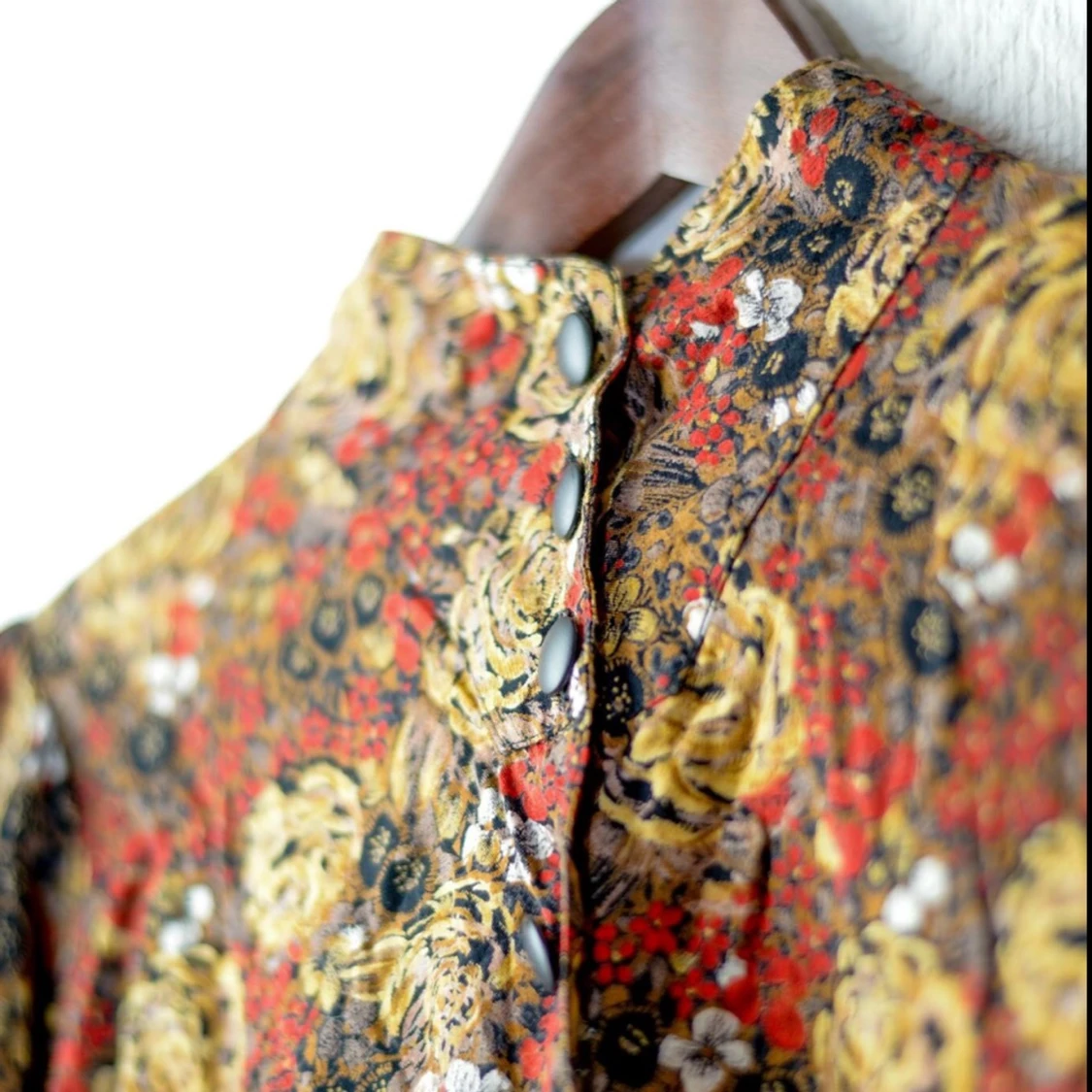 Röd och blommig blus, super cool krage med knappar.