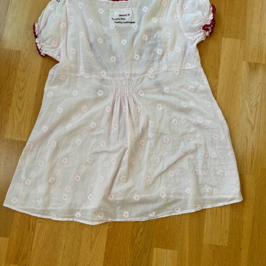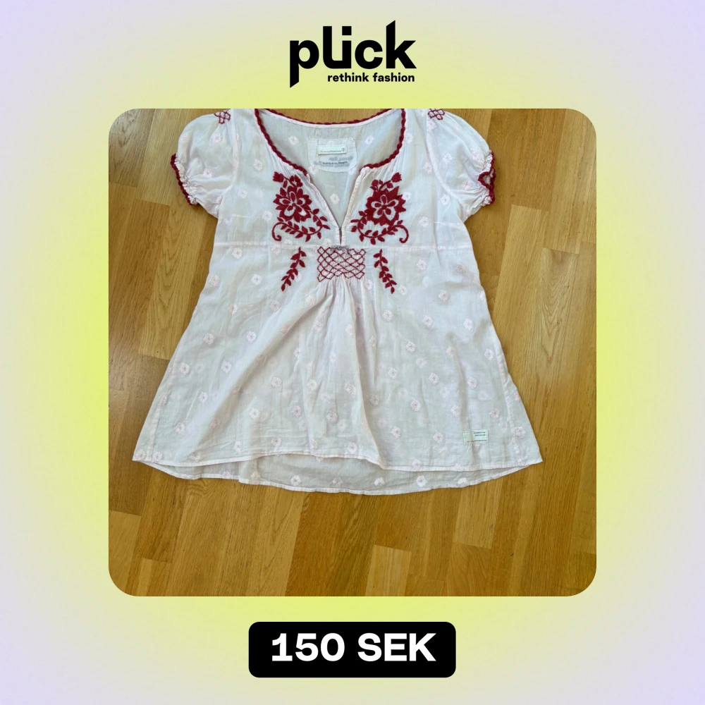 Rosa blus med broderier från Odd Molly. Lite osäker på storleken, passar mig som är storlek m men tror att den även passar s.