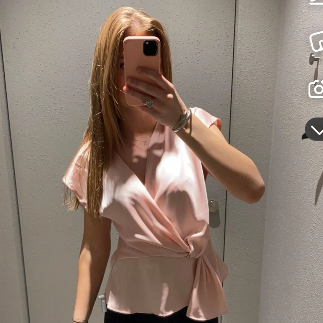 En exakt sån knytblus fast i ljus rosa! Oanvänd