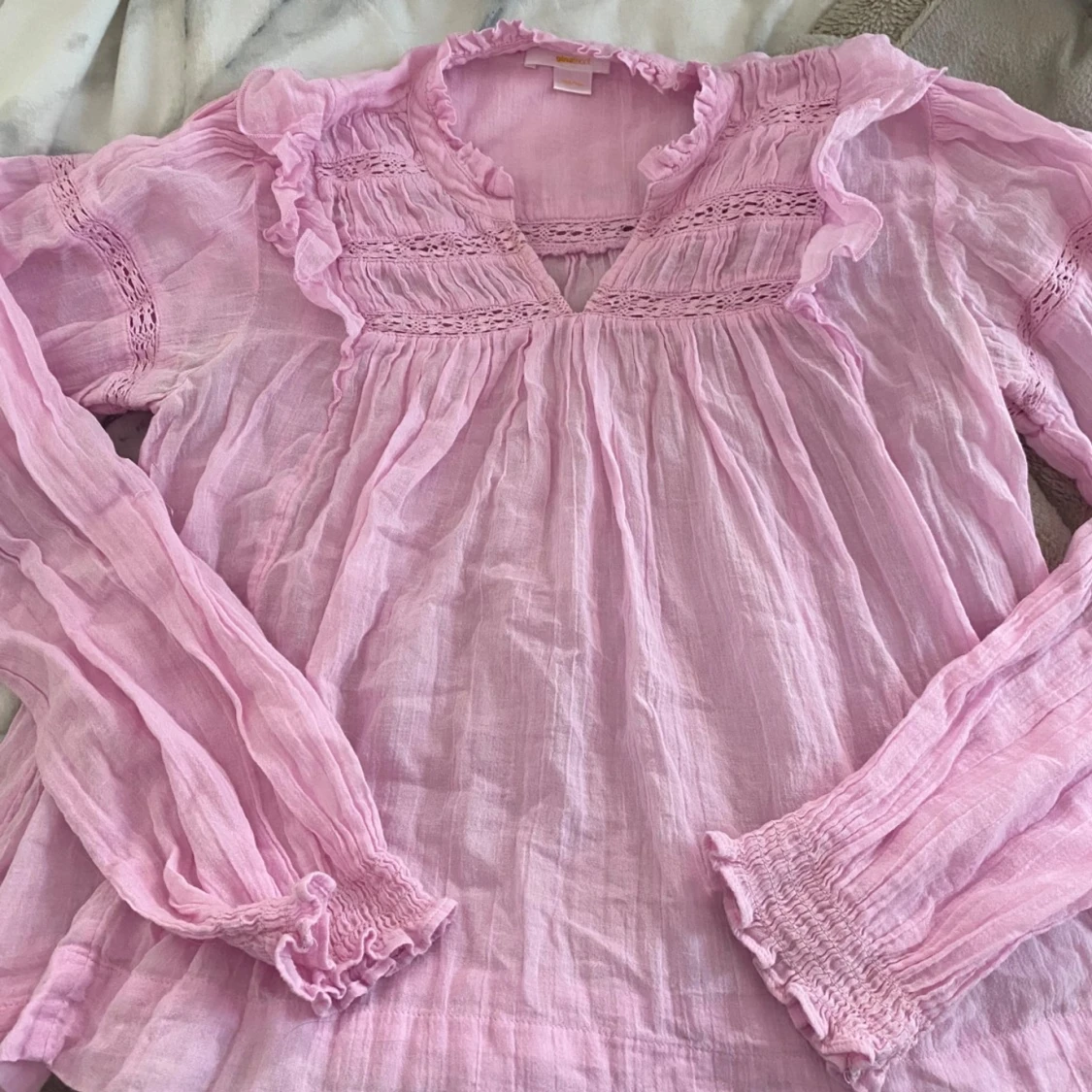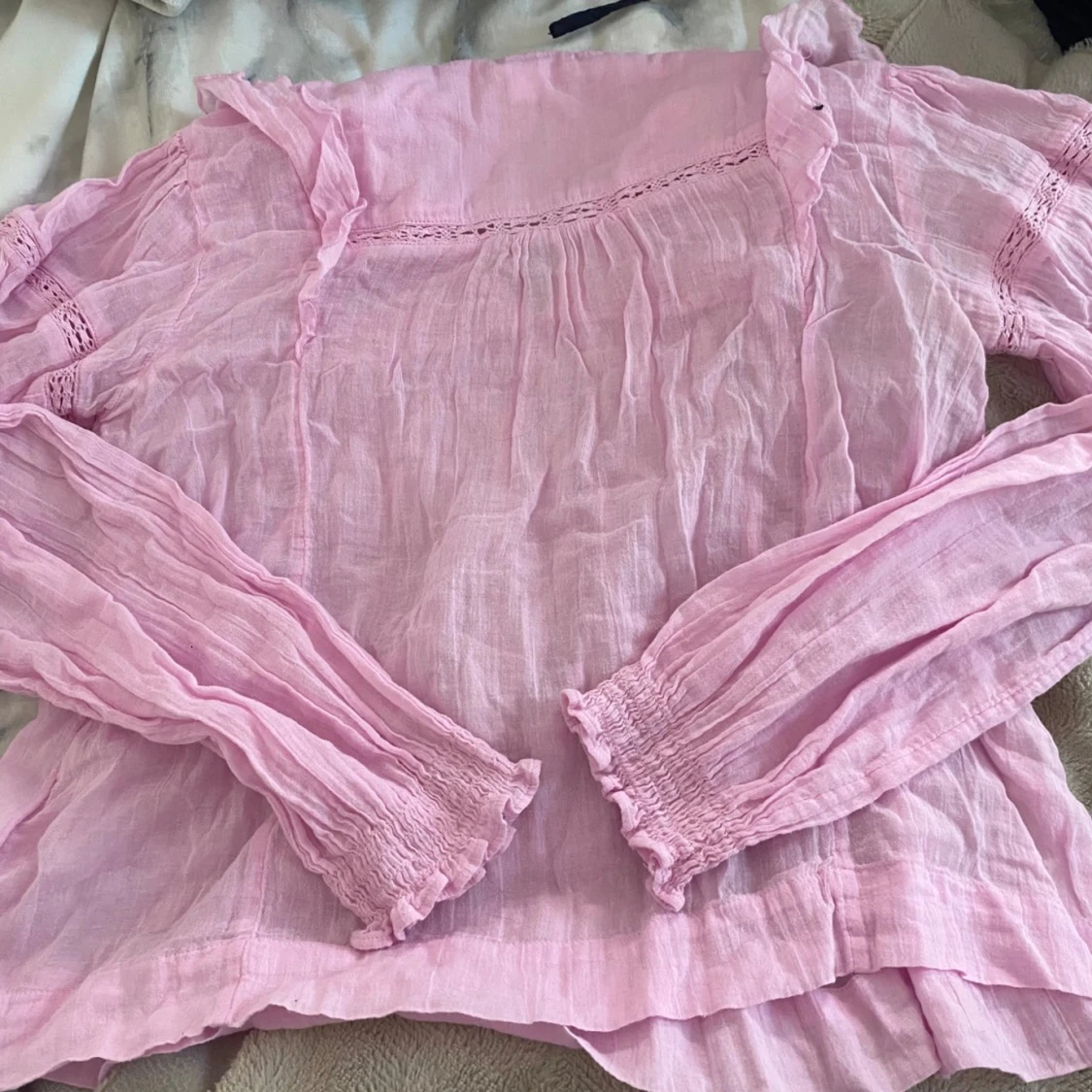 Säljer denna ljusrosa blus från ginatricot i storleken 158/164 som är supersöt men inte kommit till användning🩷