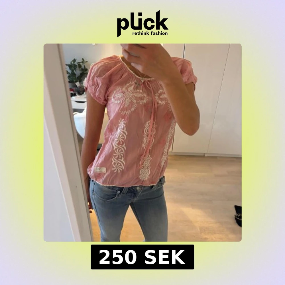 Säljer en söt rosa blus med vita broderade mönster framtill och vid axlarna. Perfekt för vår och sommar! från odd Molly. Deras storlekar är i siffror, denna i 0, skulle säga en S! Super fint skick ⭐️🩷