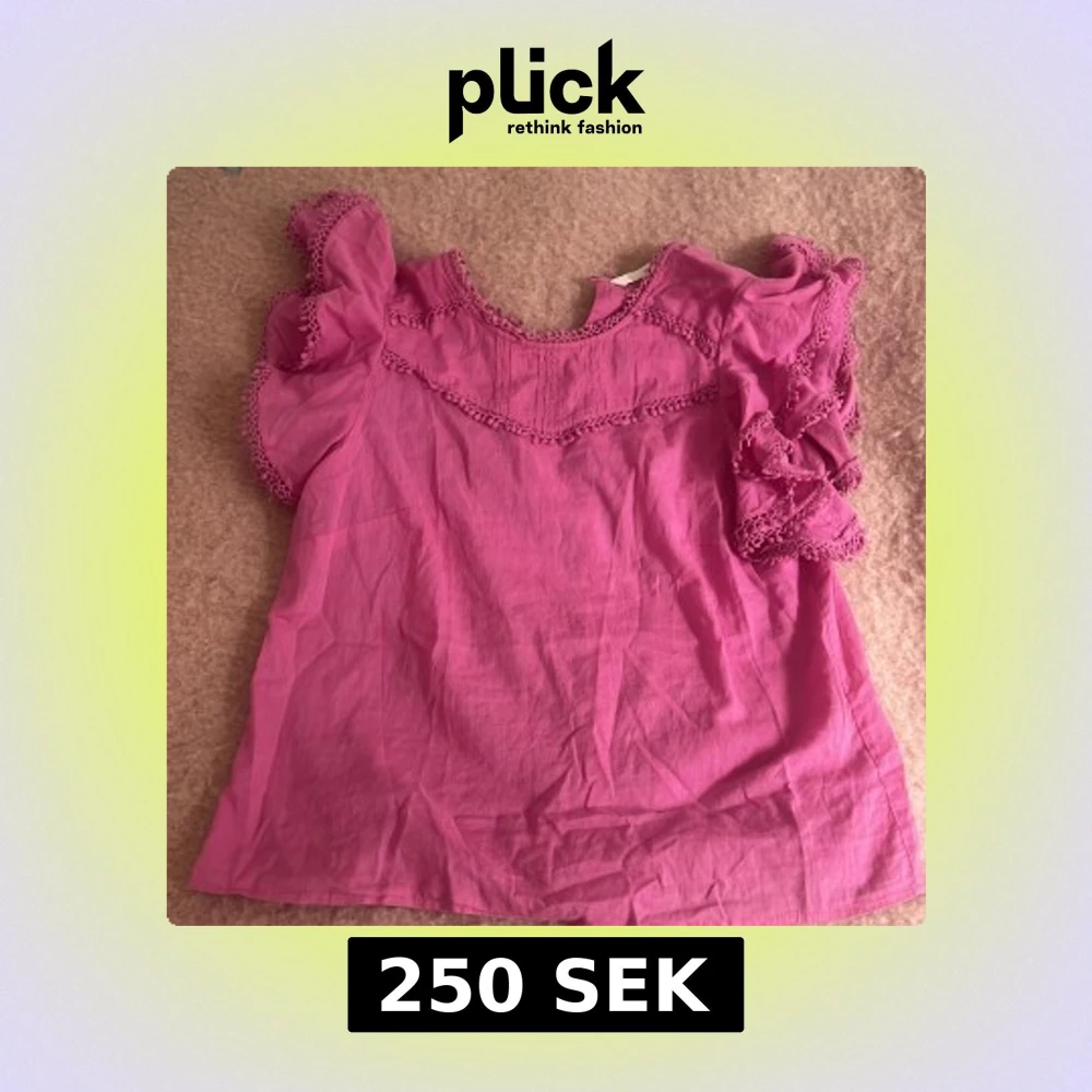 Säljer en söt rosa blus med volangdetaljer på ärmarna. Blusen har korta ärmar och dekorativa spetsdetaljer längs halsringningen och ärmarna. Perfekt för en somrig look! Inga skador🩷🩷