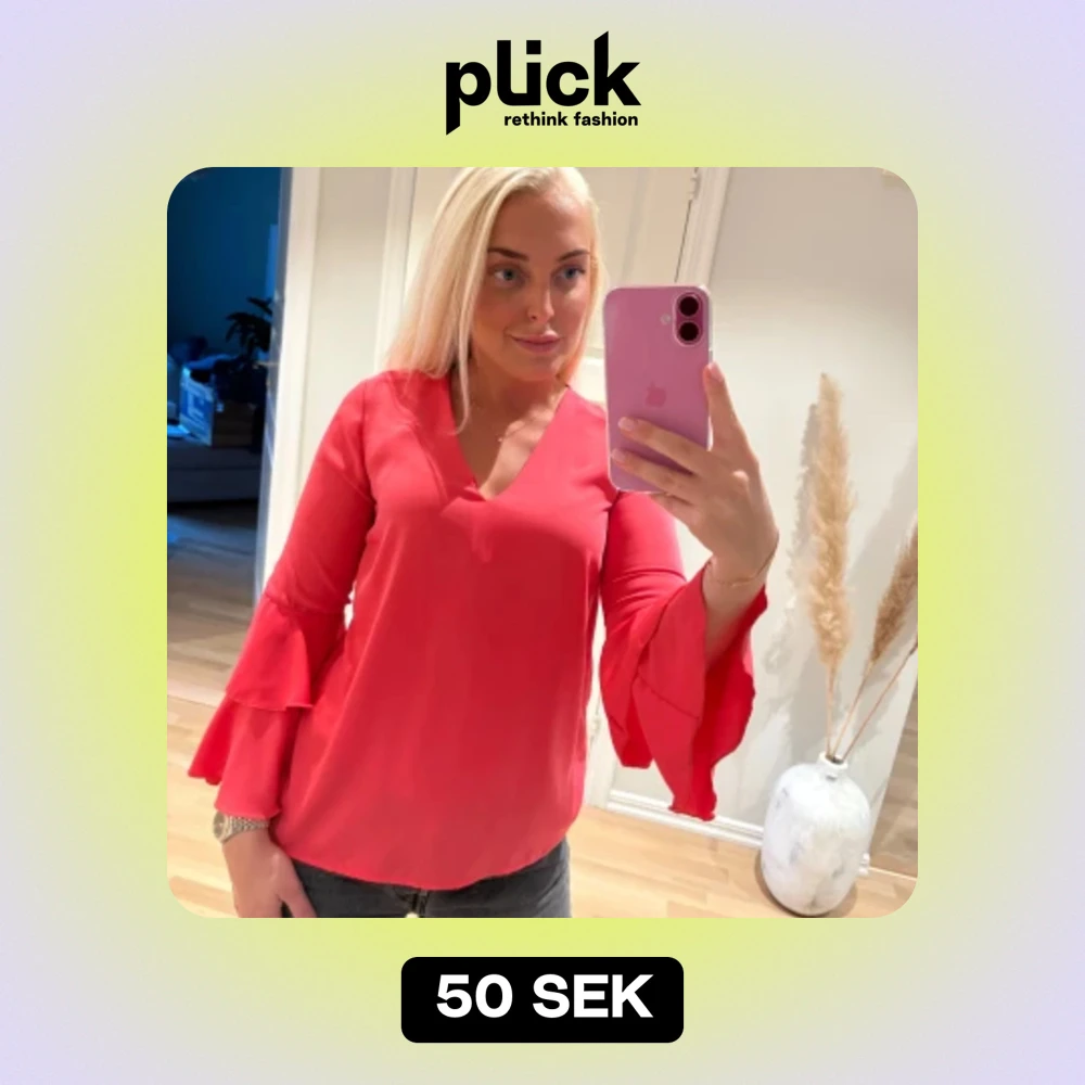 Rosa blus med volangärmar. Storlek 34. Nyskick.