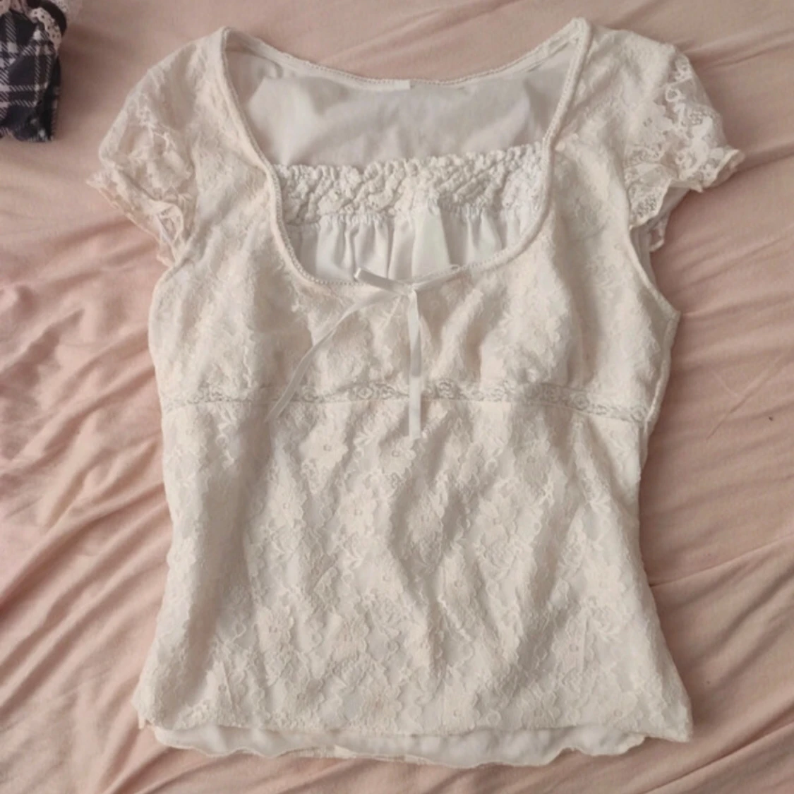 Finaste coquette blusen i ljusrosa fĂ€rg med vita detaljer!đ€ Storlek XS eller mindre S. Jag Ă€r storlek S och den var lite tight pĂ„ mig vilket Ă€r varför jag sĂ€ljer.