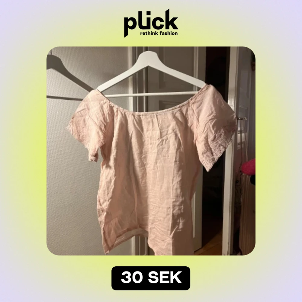 Jättefin rosa linneblus med detaljer vid ärmen som passar fint nu till sommaren💕 det finns ingen lapp där det står vilken storlek osv men skulle gissa på M då den sitter lite stort på mig som brukar ha S