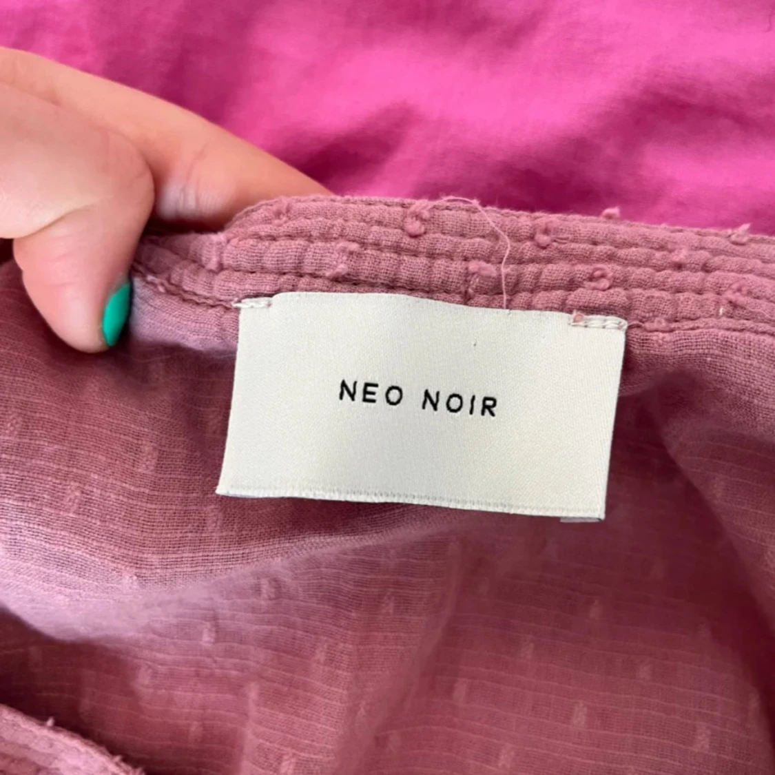 Supersöt rosa blus från Neo Noir med v-ringning och volangdetalj längs halsringningen. Långärmad och lätt texturerat tyg som ger en romantisk känsla. Perfekt att styla med jeans eller kjol.