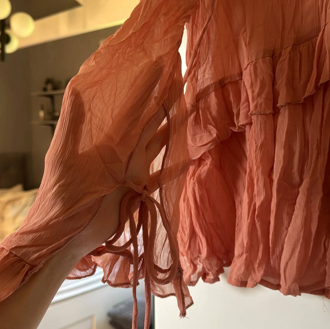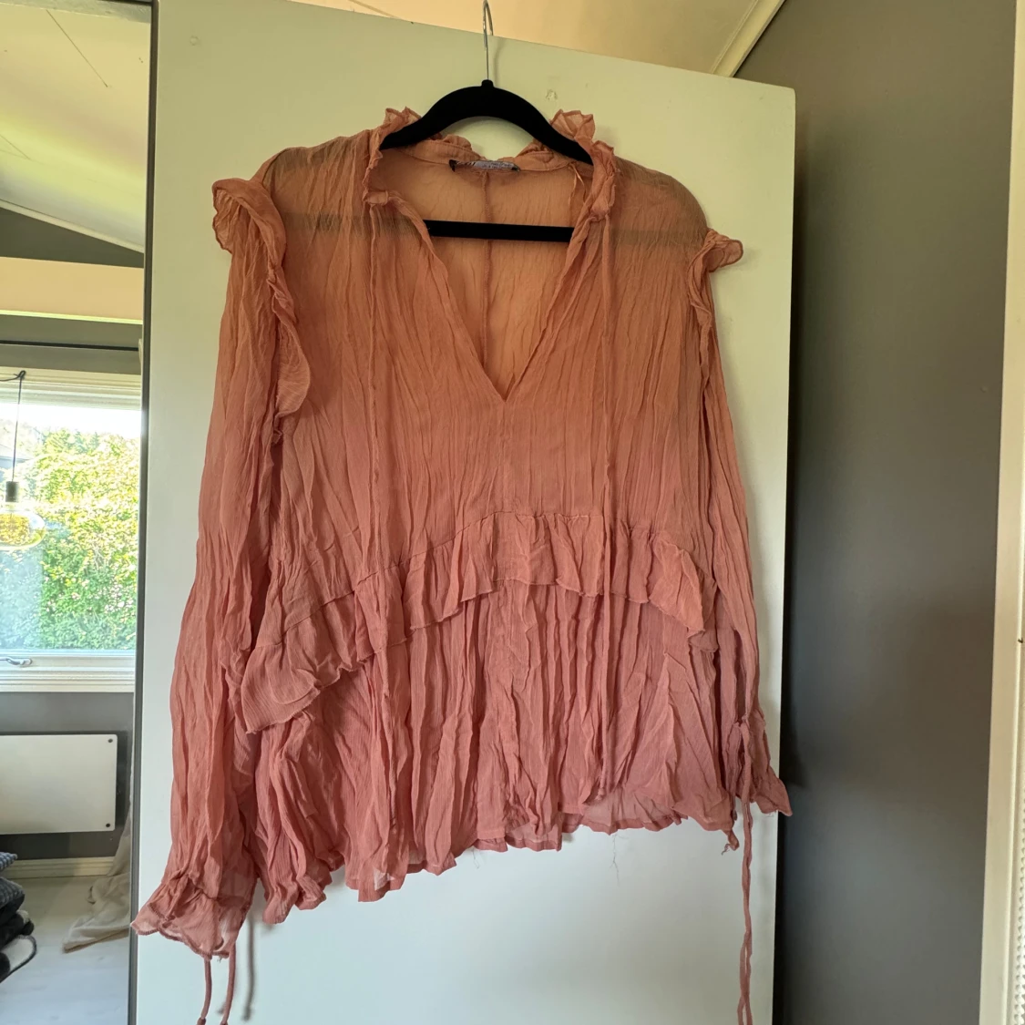 Så fin rosa blus från zara som man knyter längst ut💕💕 använd vid ett tillfälle🤍