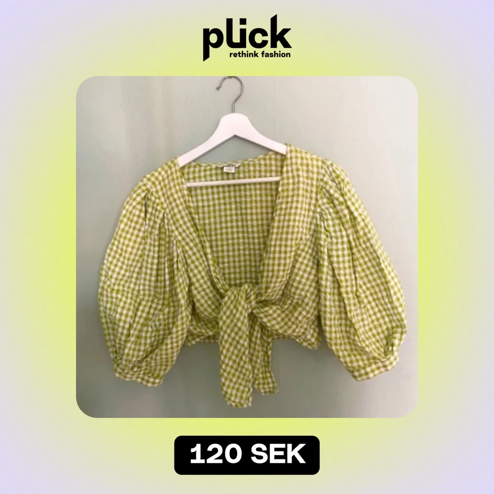 Rutig blus från Monki med knytning, passar XS-M skulle jag säga!