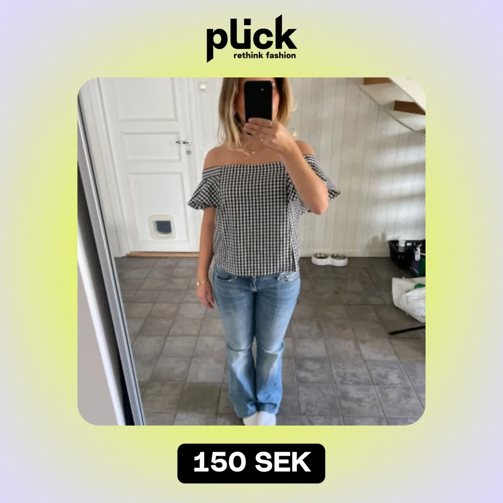 Rutig of shoulder tröja i storlek S. Jättebra skicka. Tröjan är ifrån T•I•M•I•N•G 🥰