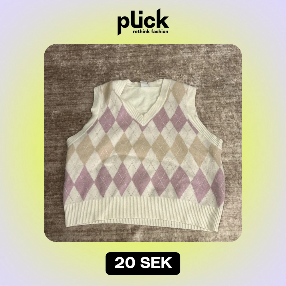 Säljer en superfin stickad väst från Lindex i storlek 158/164. Den har ett klassiskt rutigt mönster i beige och lila med en v-ringad hals. Perfekt för lager-på-lager under hösten eller våren. Västen är i mycket bra skick. Säljer för att jag inte har haft på mig den sen 2021