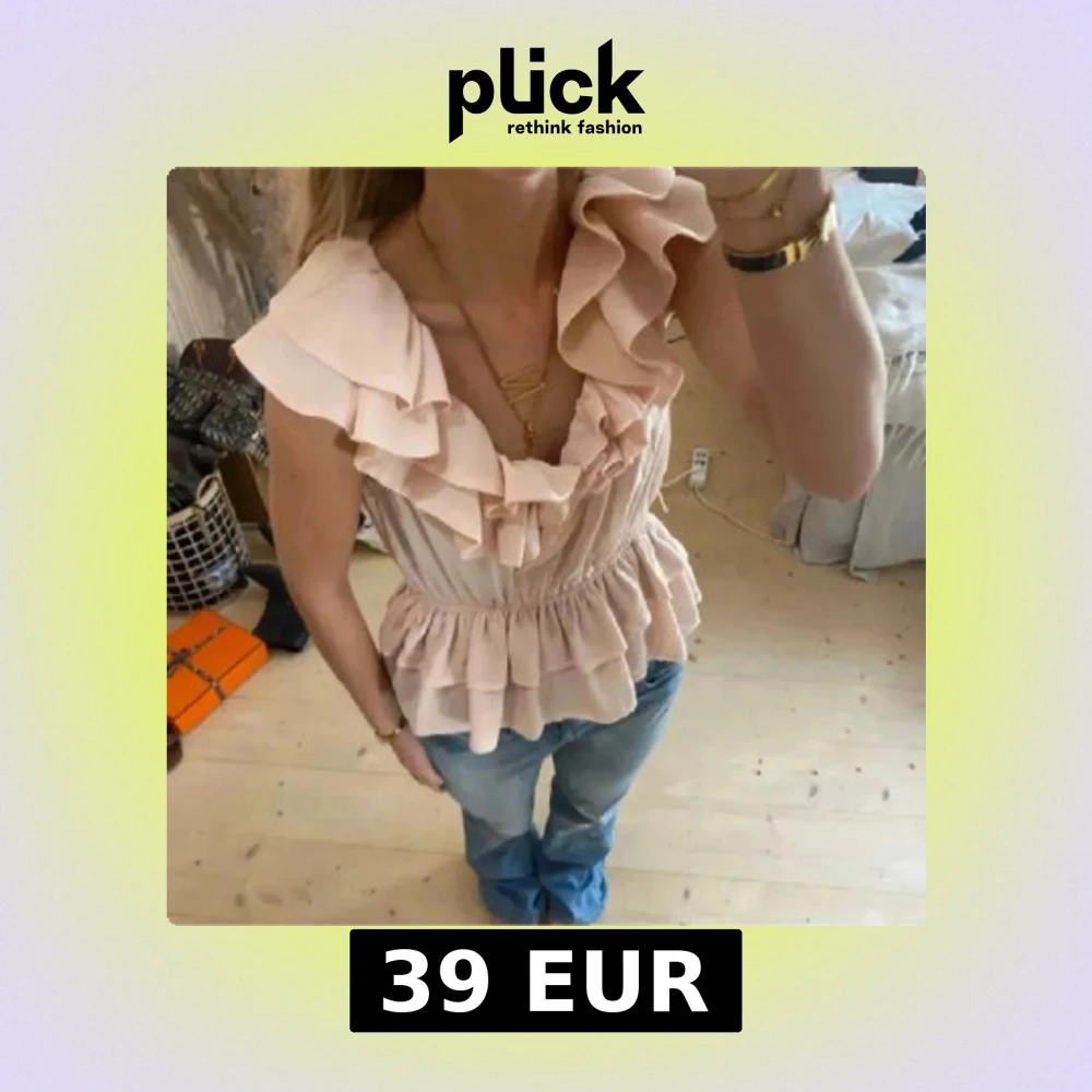 Säljer en söt beige/rosa volangtopp som är slutsåld av hm💕 Gummibandet vid midjan är lös och därför är skjortan kanske mer S/M storlek (priset kan diskuteras!)