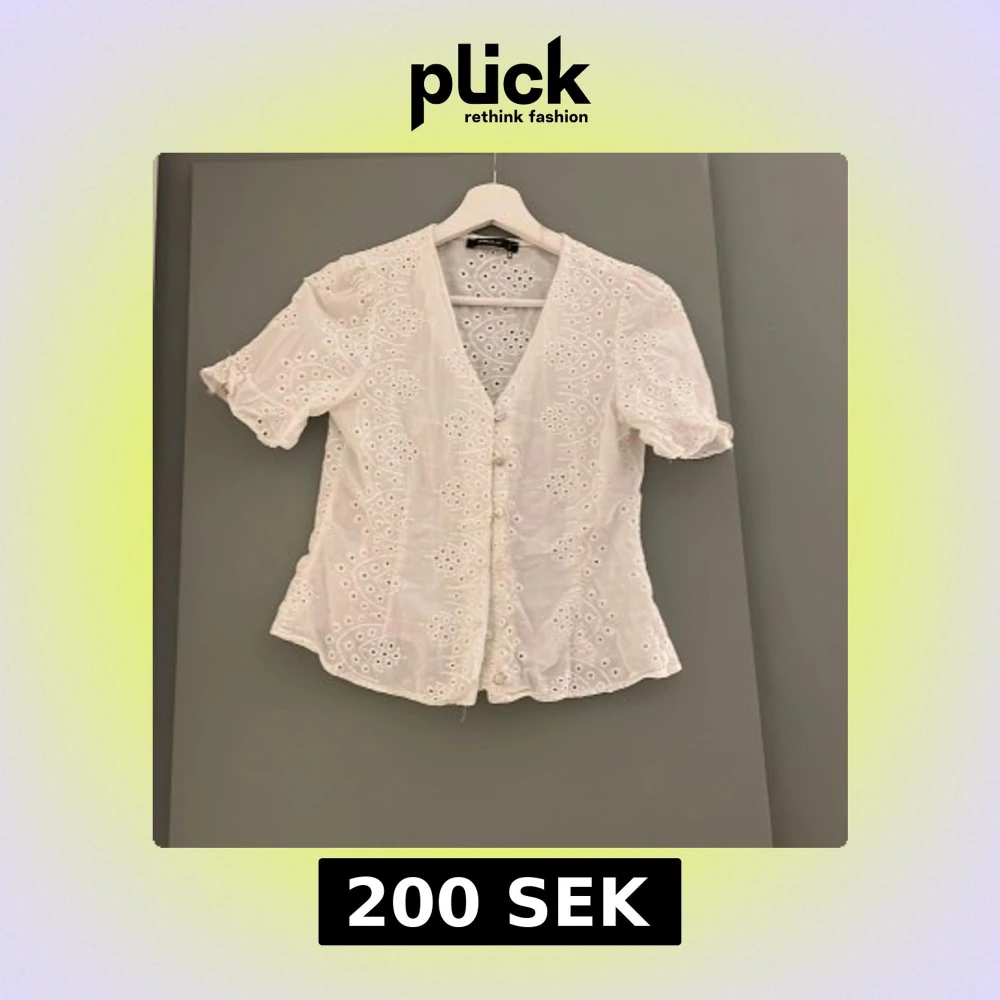 Detta är en v ringad blus från pika, kortärmad med volang och ett fint hålmönster. Perfekt till sommaren.