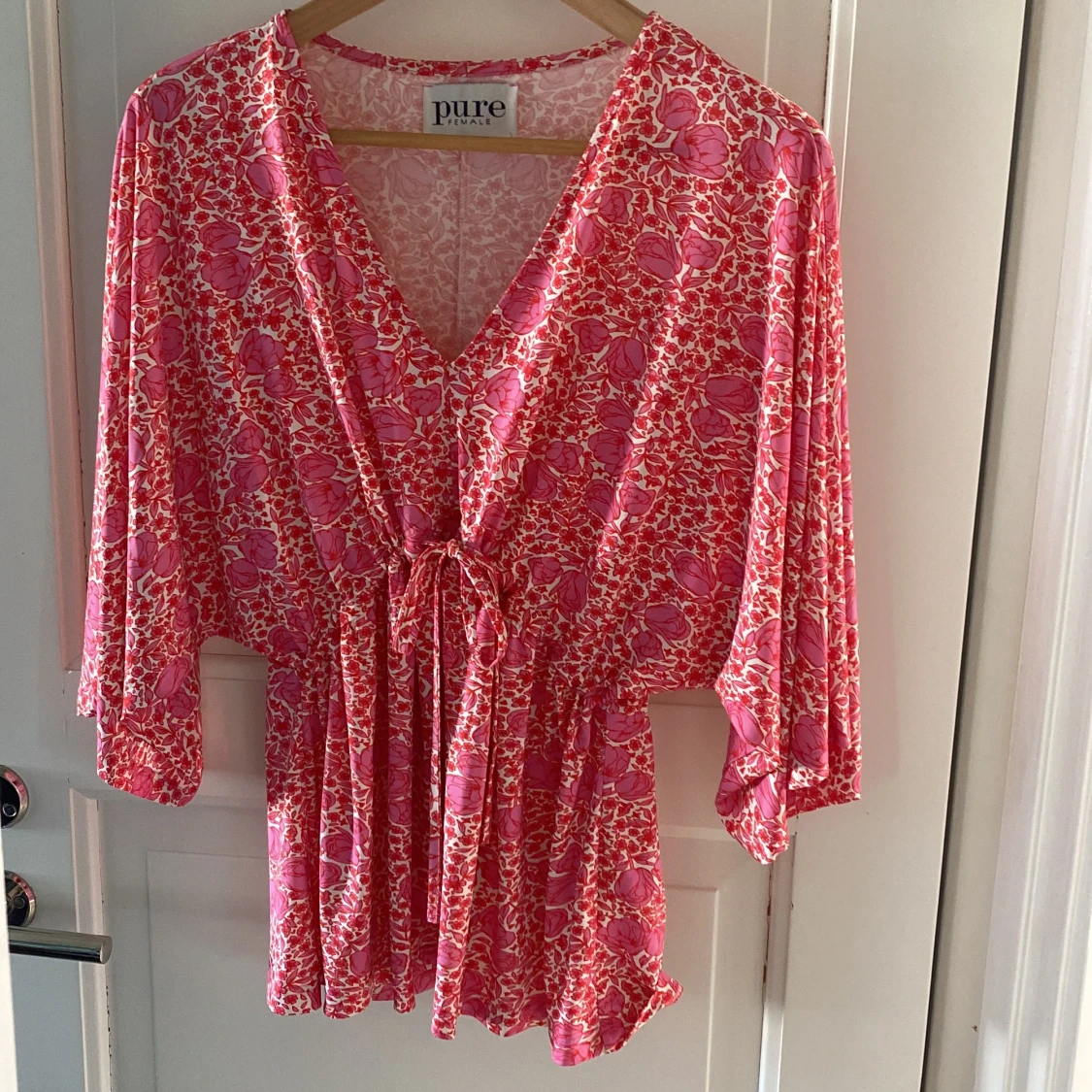 Sval, skön tretchig topp i 92% polyester 8% elastan. Knyt under byst för bästa passformen. Stor i storleken.