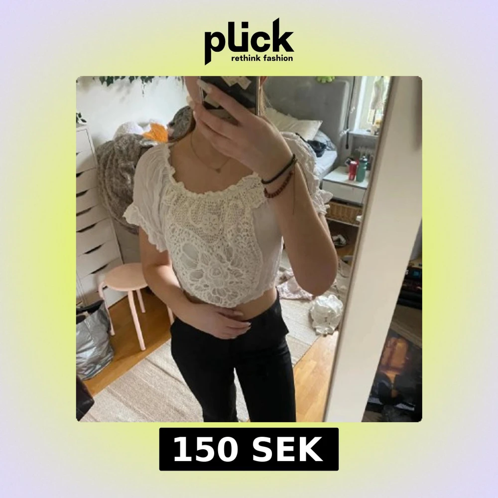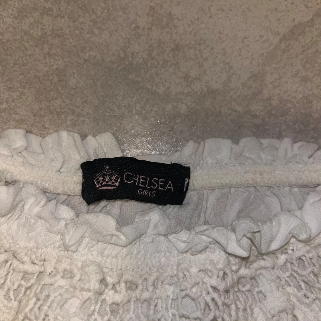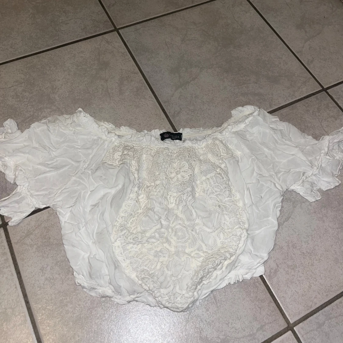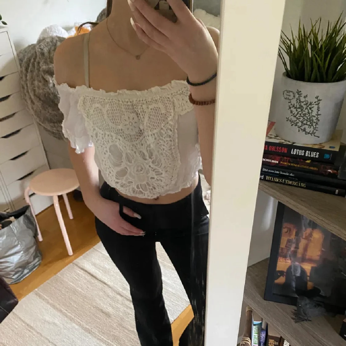 Vit blus med spets från Chelsea i storlek xs/s. Man kan ha den både on och off shoulders. Jättesöt till sommaren!!💗