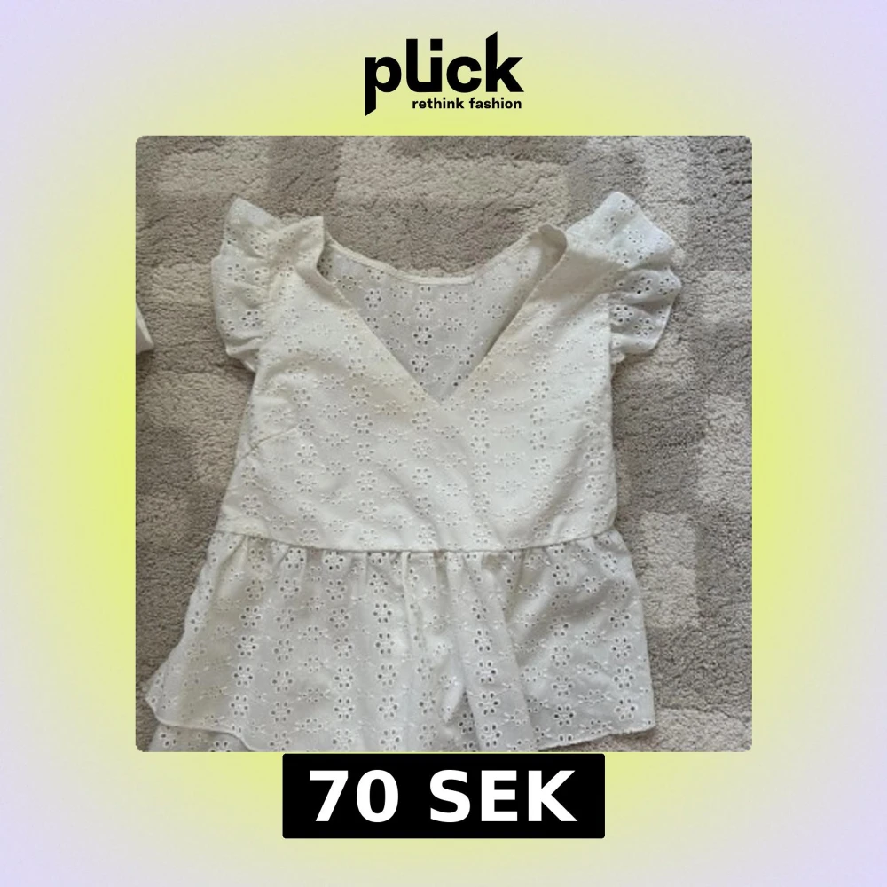 Superfin vit blus med v-ringning, korta puffärmar och volang nertill. 🥰