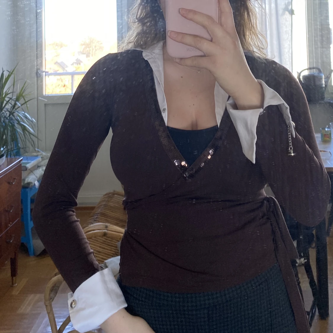 Classy fin blus, vintage. Tyvärr är den (som syns) för liten för mig, storlek 36/38, rekommenderar om man har lite mindre byst. Den så cool, ledsen att den inte passar mig 🥲 toppen skick också, så gott som oanvänd.