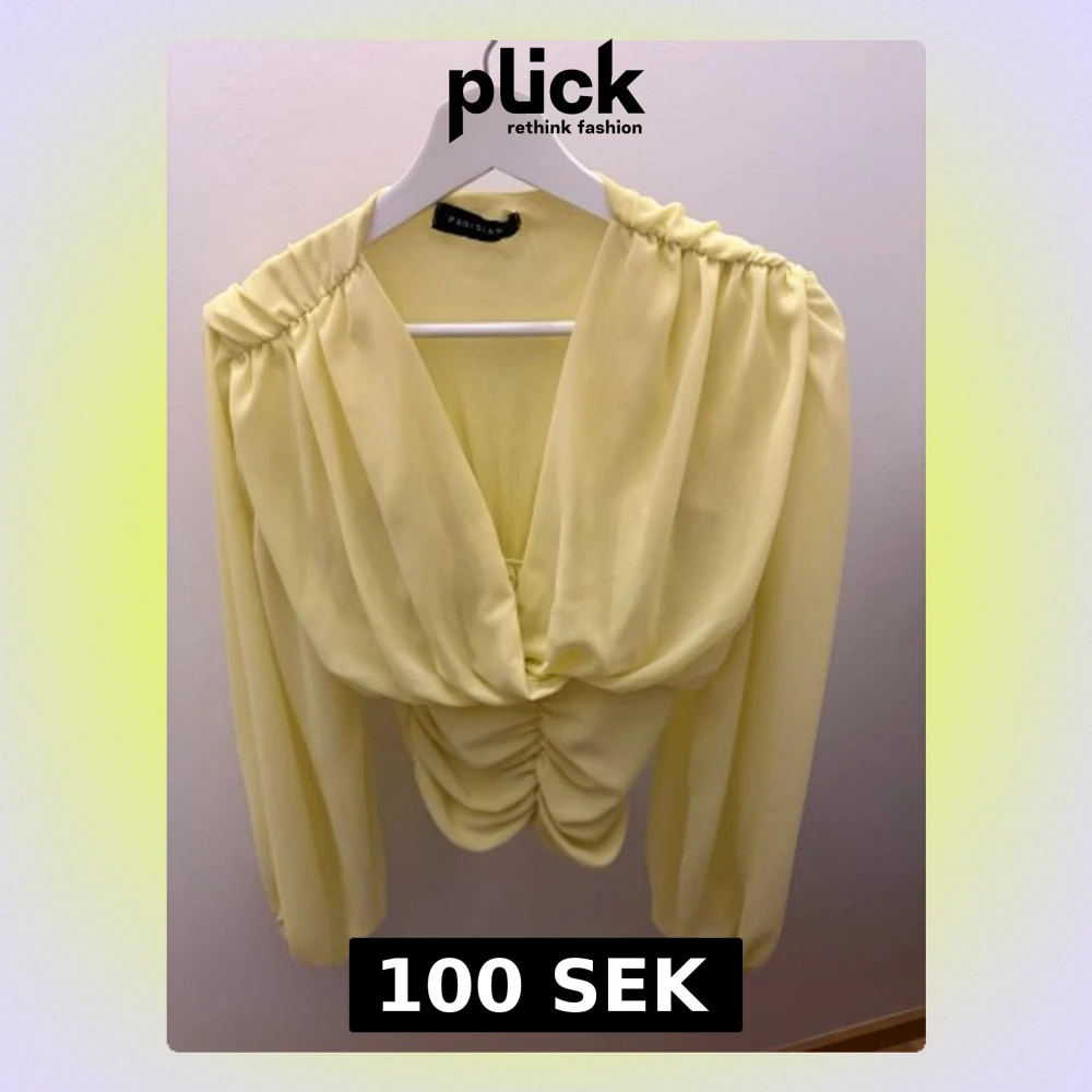 Trendig gul blus från Parisian med djup v-ringning och draperad front. Blusen har långa ärmar med puffiga axlar och smockad rygg för en snygg passform. Tillverkad i ett lätt, flowy material som ger en luftig känsla.