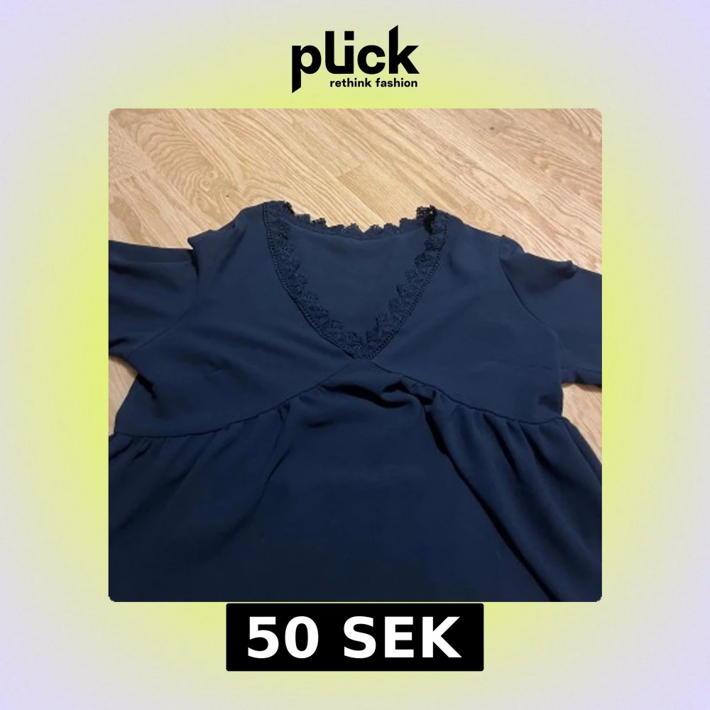 Mörkblå blus med v-ringning och fina spetsdetaljer längs halsen. Perfekt för dig som gillar stilrena och eleganta plagg