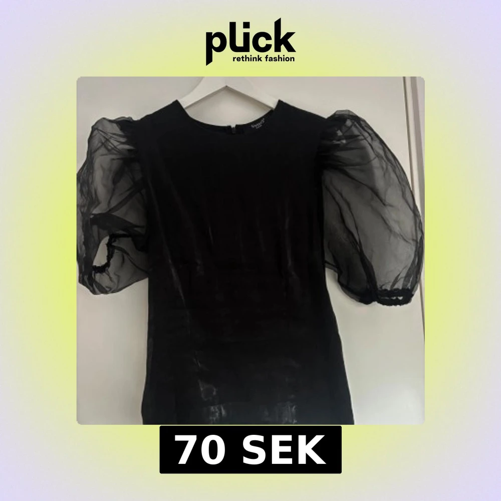 Säljer en svart tröja med stora, transparenta puffärmar. tröjan har en rak passform och rund halsringning. Perfekt för dig som vill sticka ut med en trendig och elegant look.