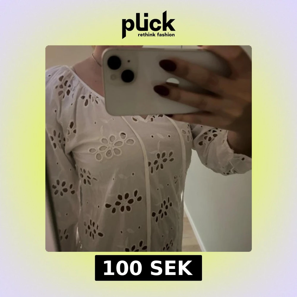 Säljer en söt vit blus med fina blomdetaljer fram och bak på blusen!