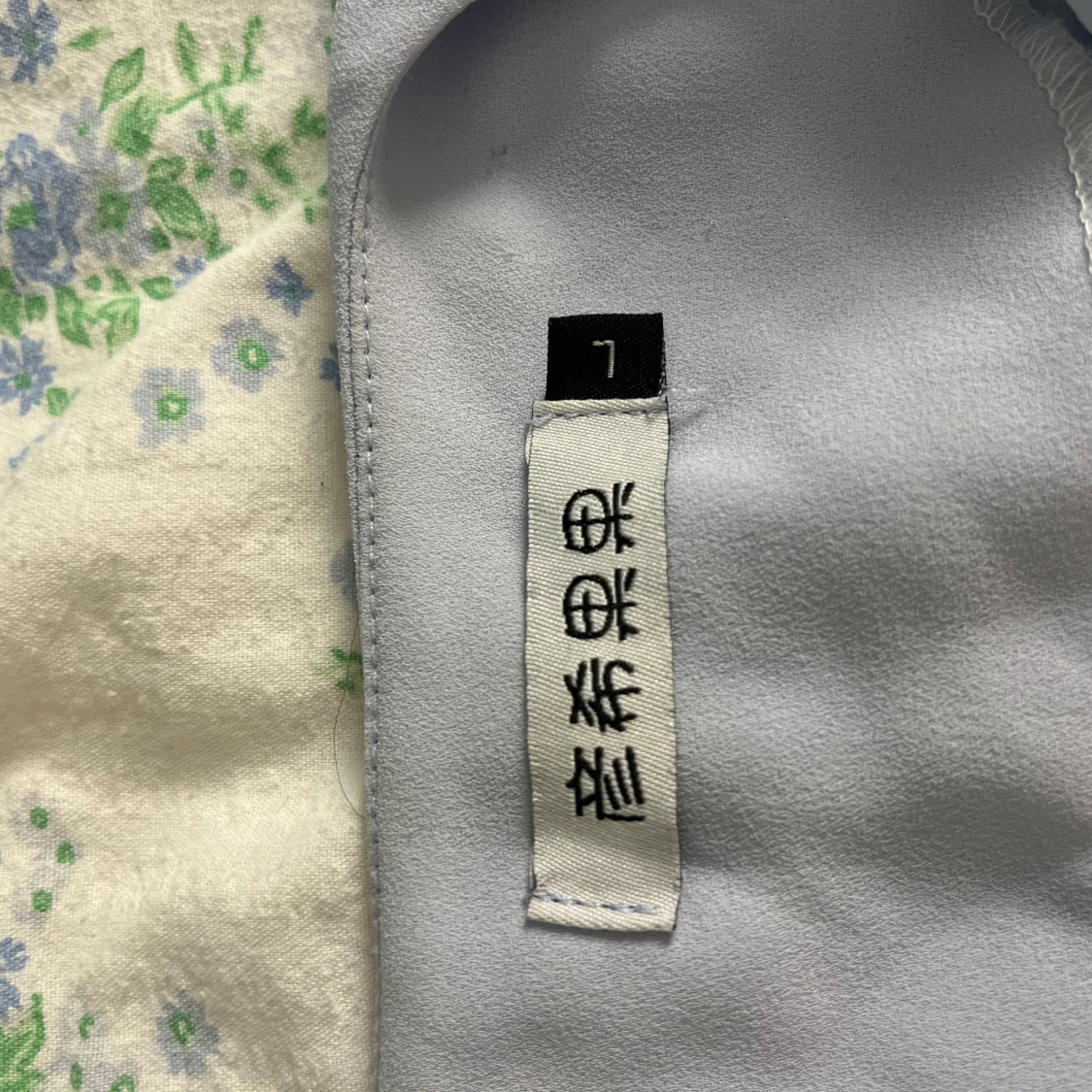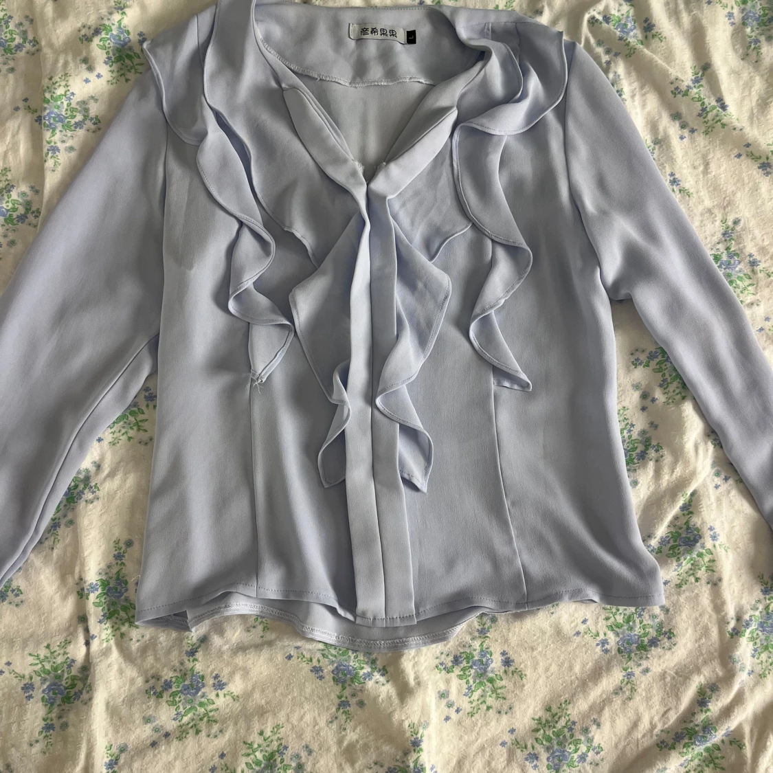 Köpte denna blus på en marknad för 300 kr för ett tag sedan så känner inte till märket. Använt några gånger men fortfarande bra skick, storleken sägs vara L men sitter som S.