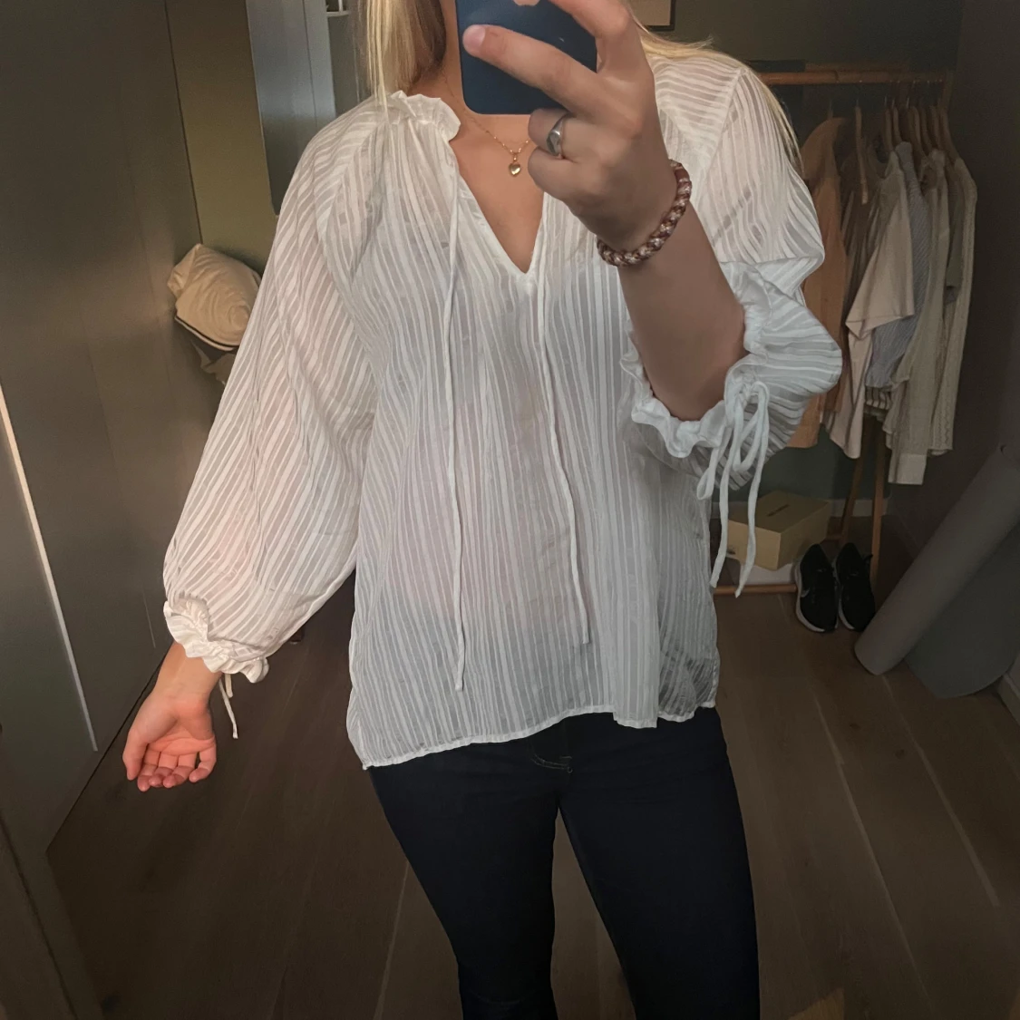 Vit blus med fina detaljer, knappt använd.